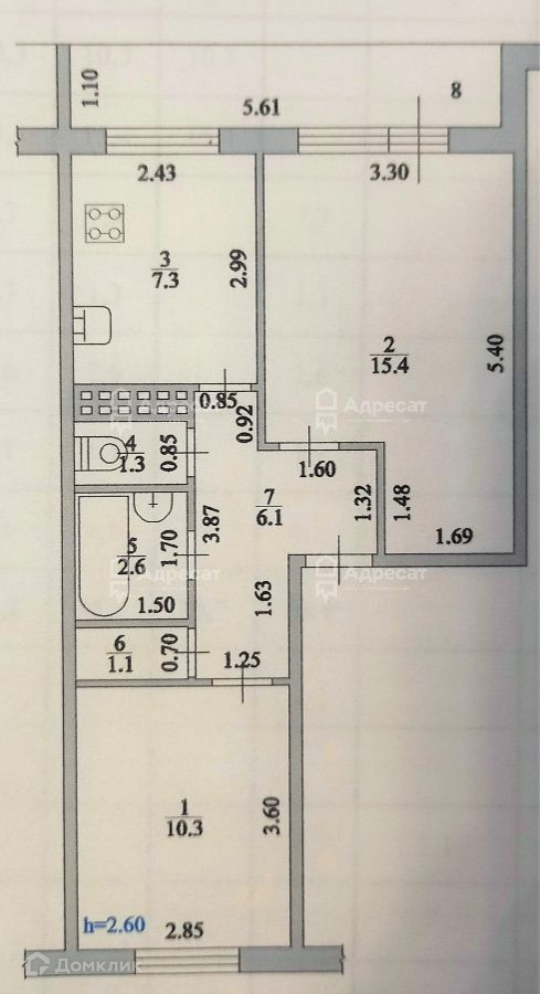 Кухня – 7,3 кв.м.