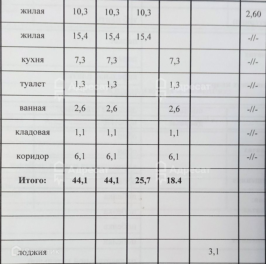 Общая площадь 44.1 м2