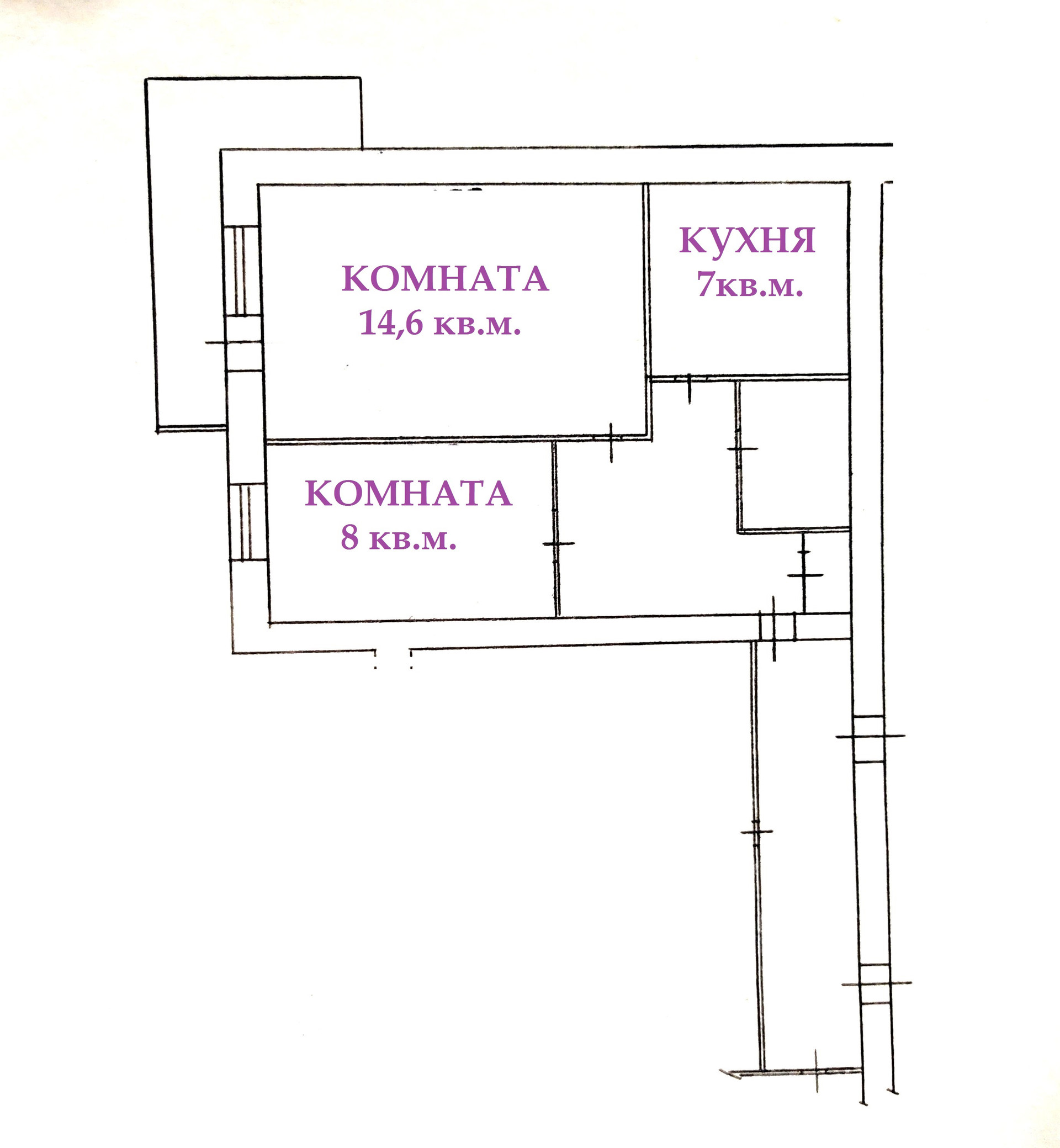 Жилая площадь 22.7 м2