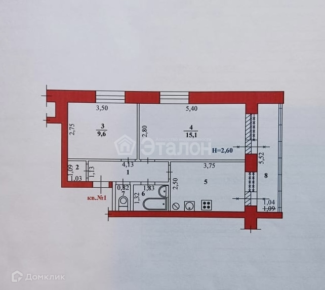 Высота потолков 2.6 м