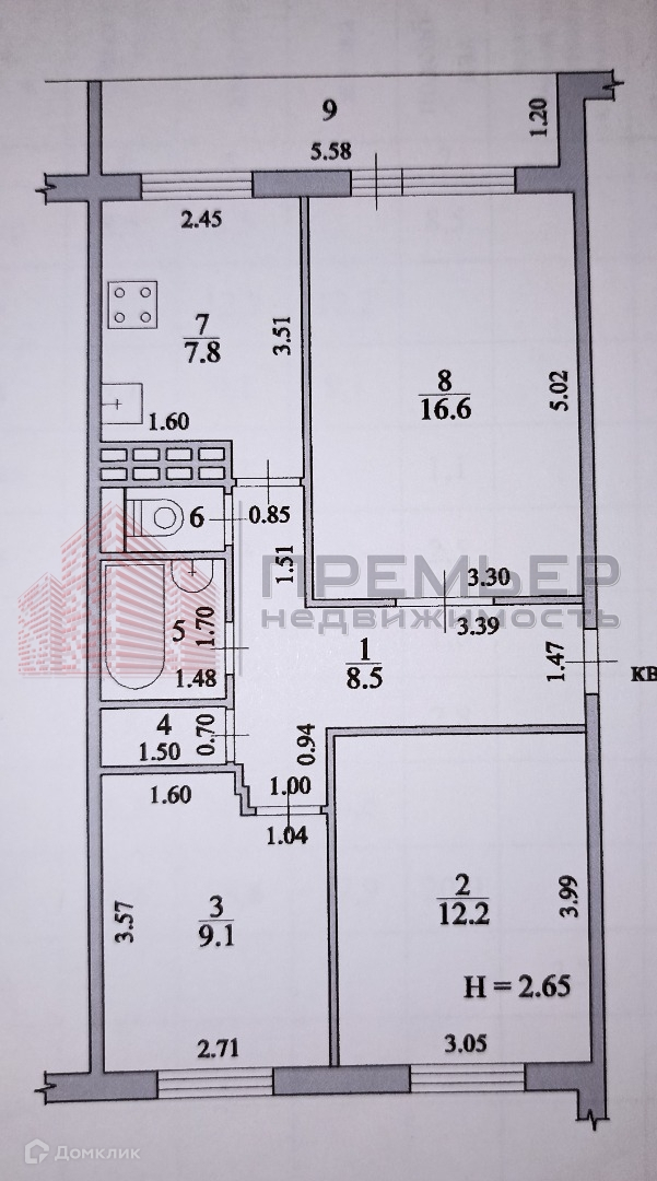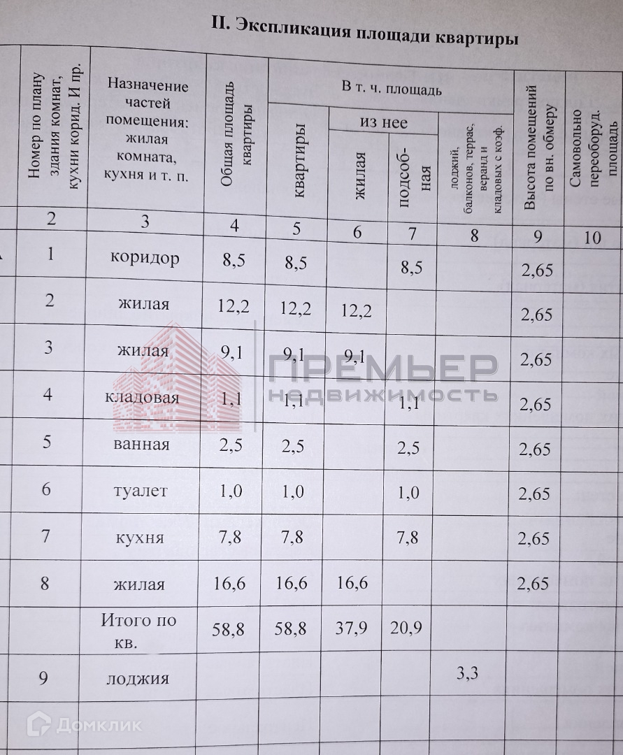 Высота потолков 2.65 м
