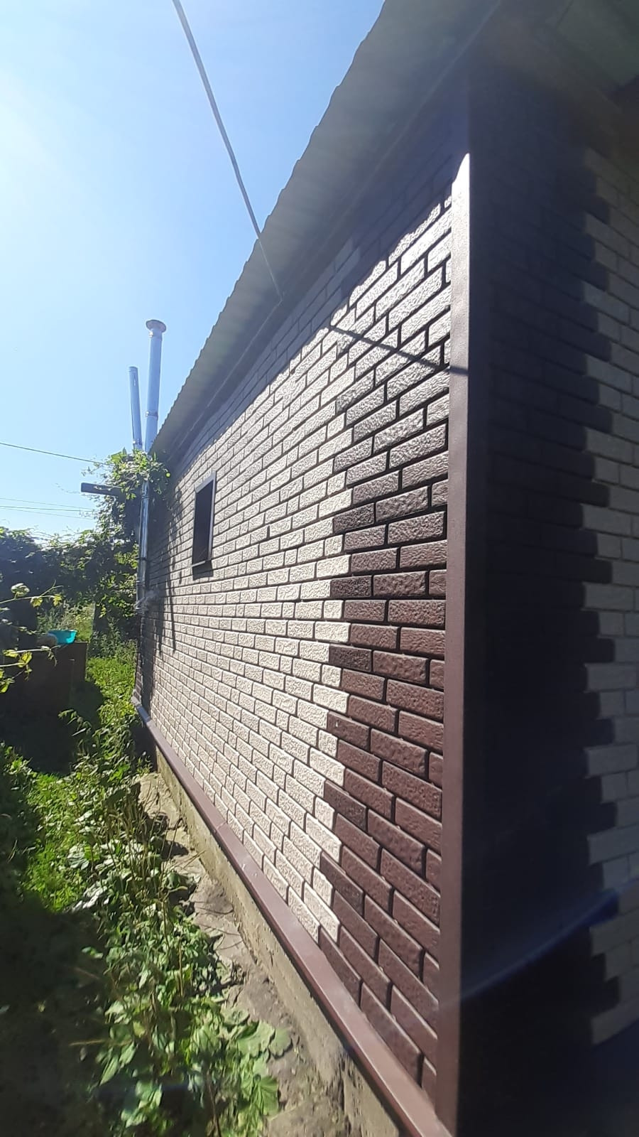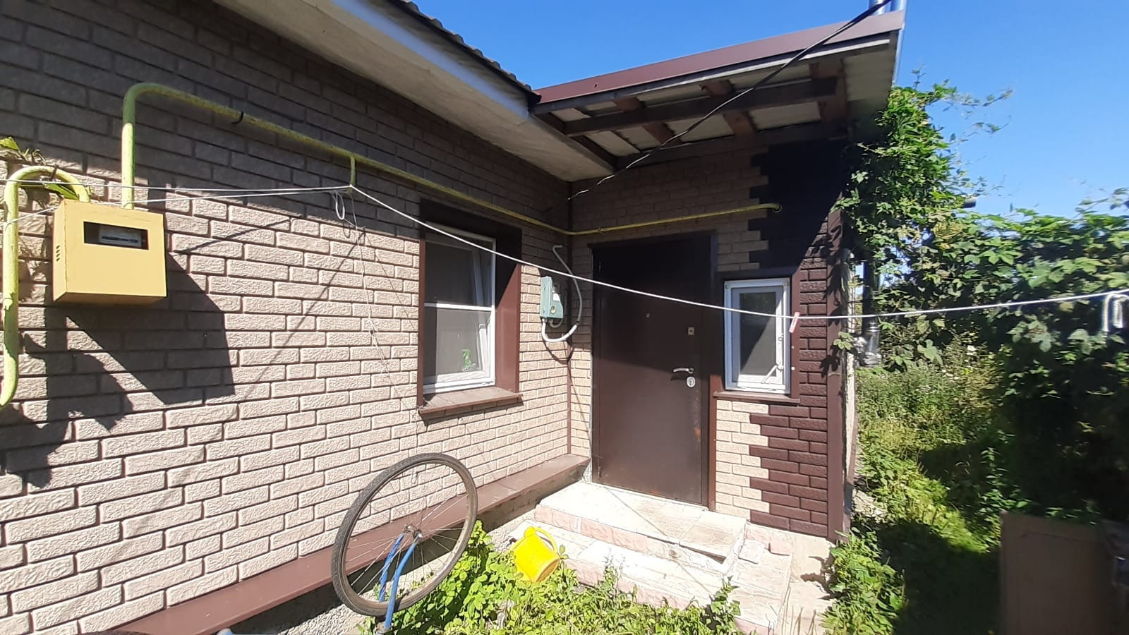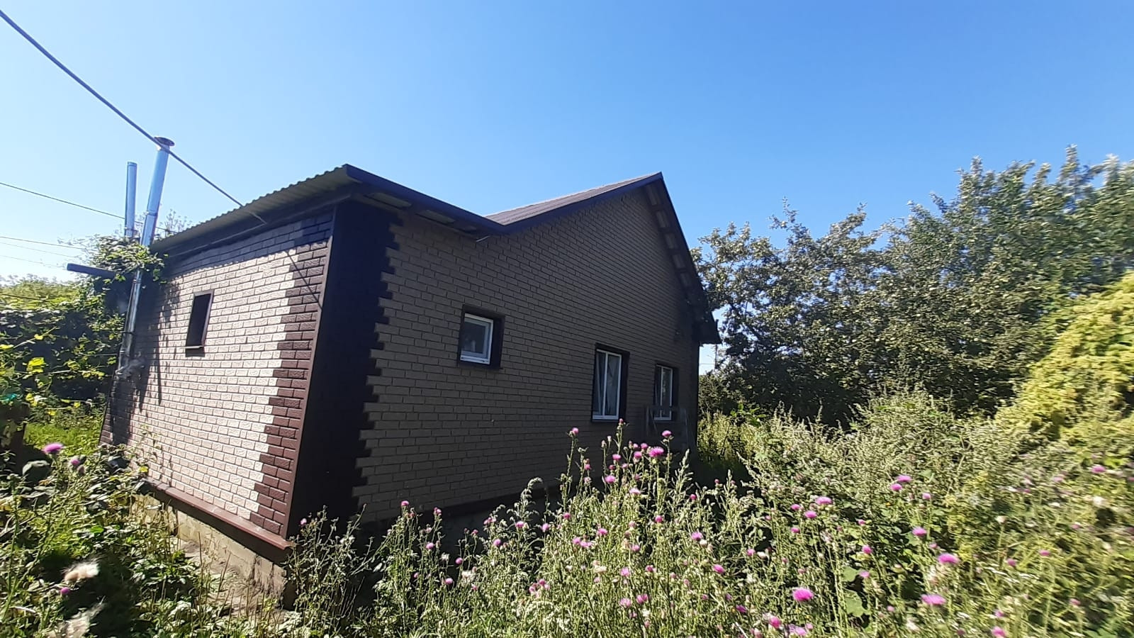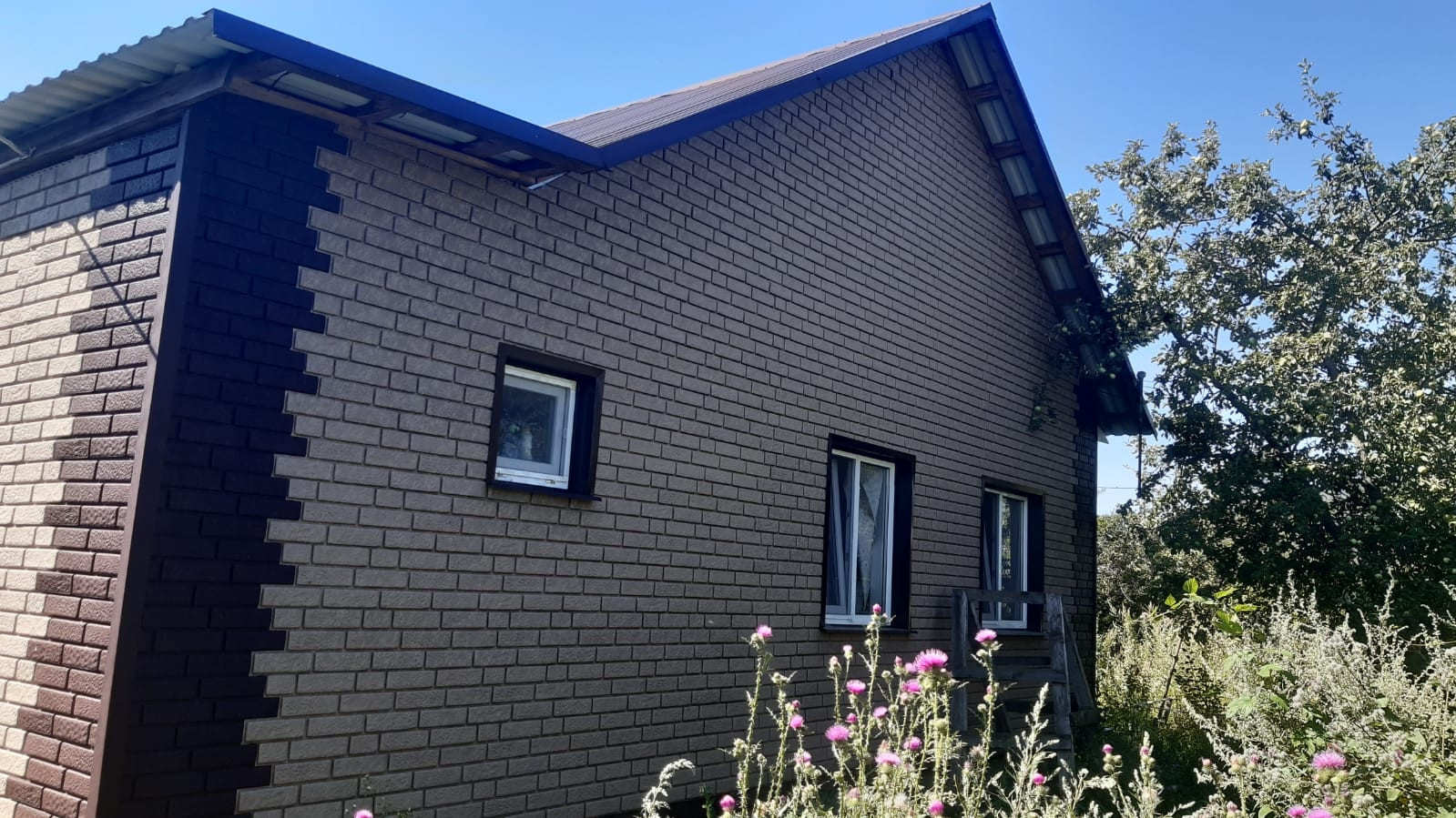 По всему периметру дома новый фундамент, утеплены стены (Пеноплекс), сайдинг под кирпич, новая двускатная крыша (профлист), пластиковые окна.