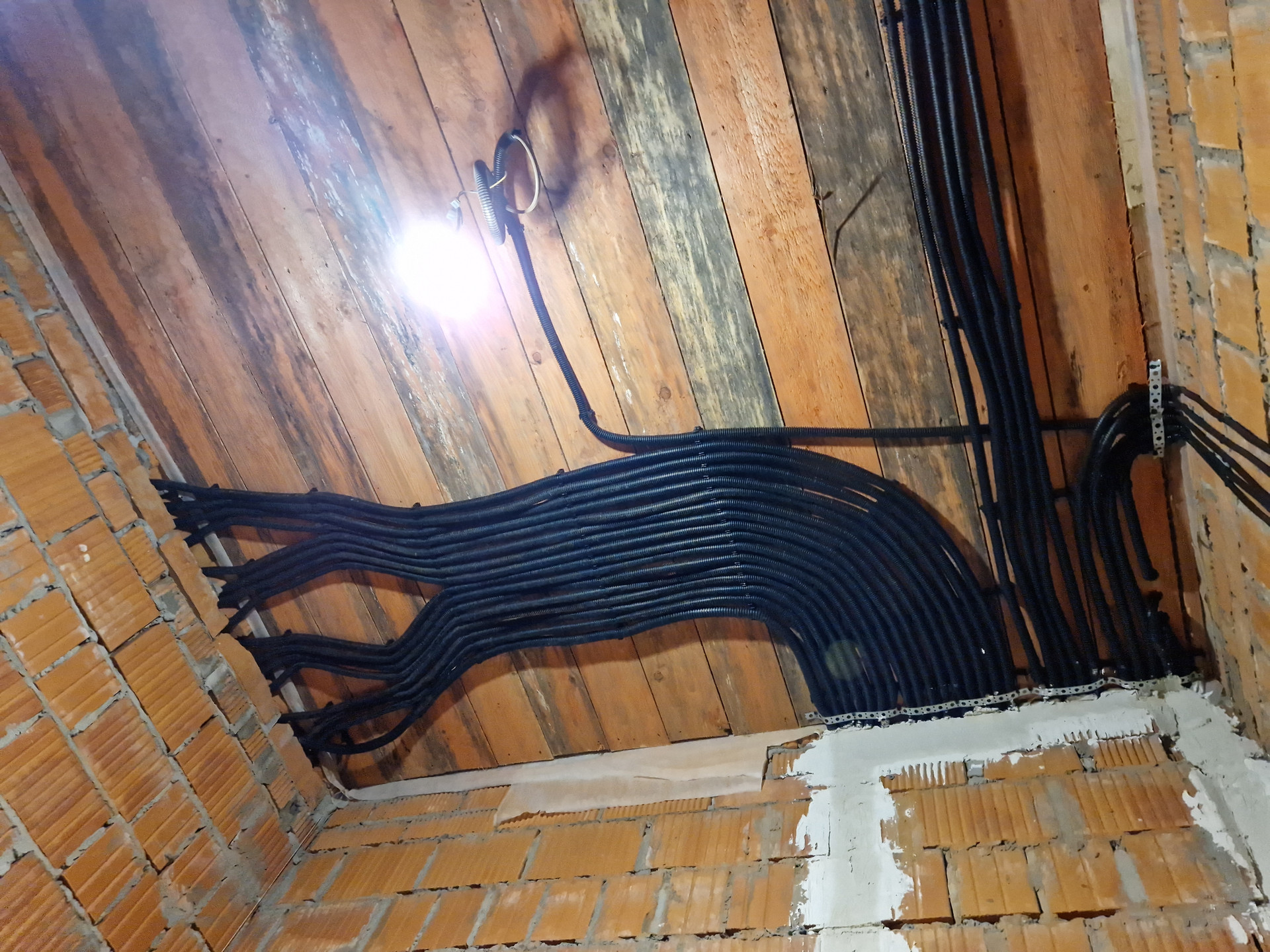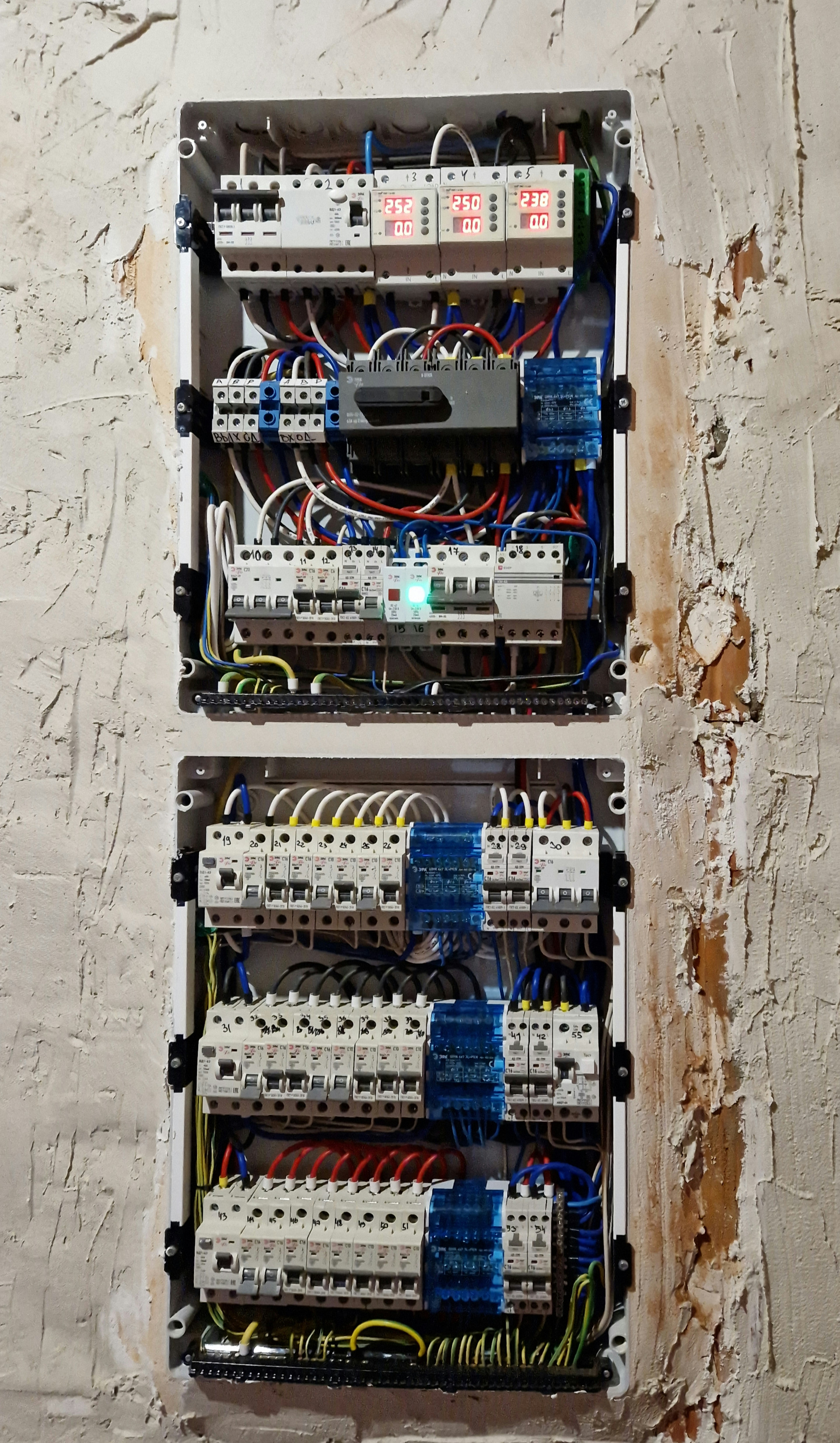 Смонтирована и разведена черновая электрика, силовая и FTP. Кабель ГОСТ. Проходные выключатели, мастер выключатель на входе, вывод на АВР ДГУ. Есть электрокотёл, пока не подключен газ.