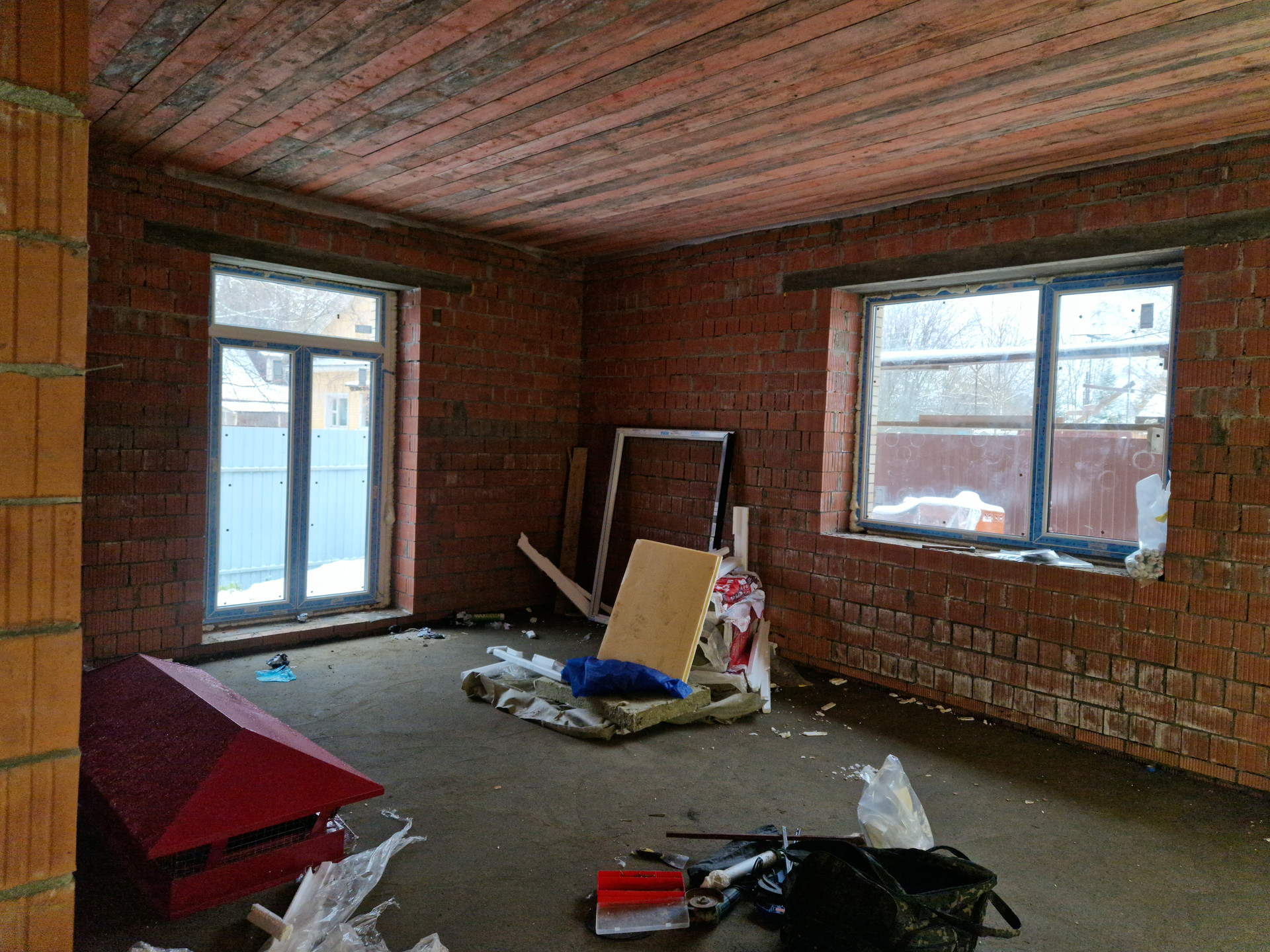 Выполнена черновая стяжка пола.