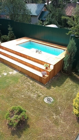Во дворе каркасный бассейн.