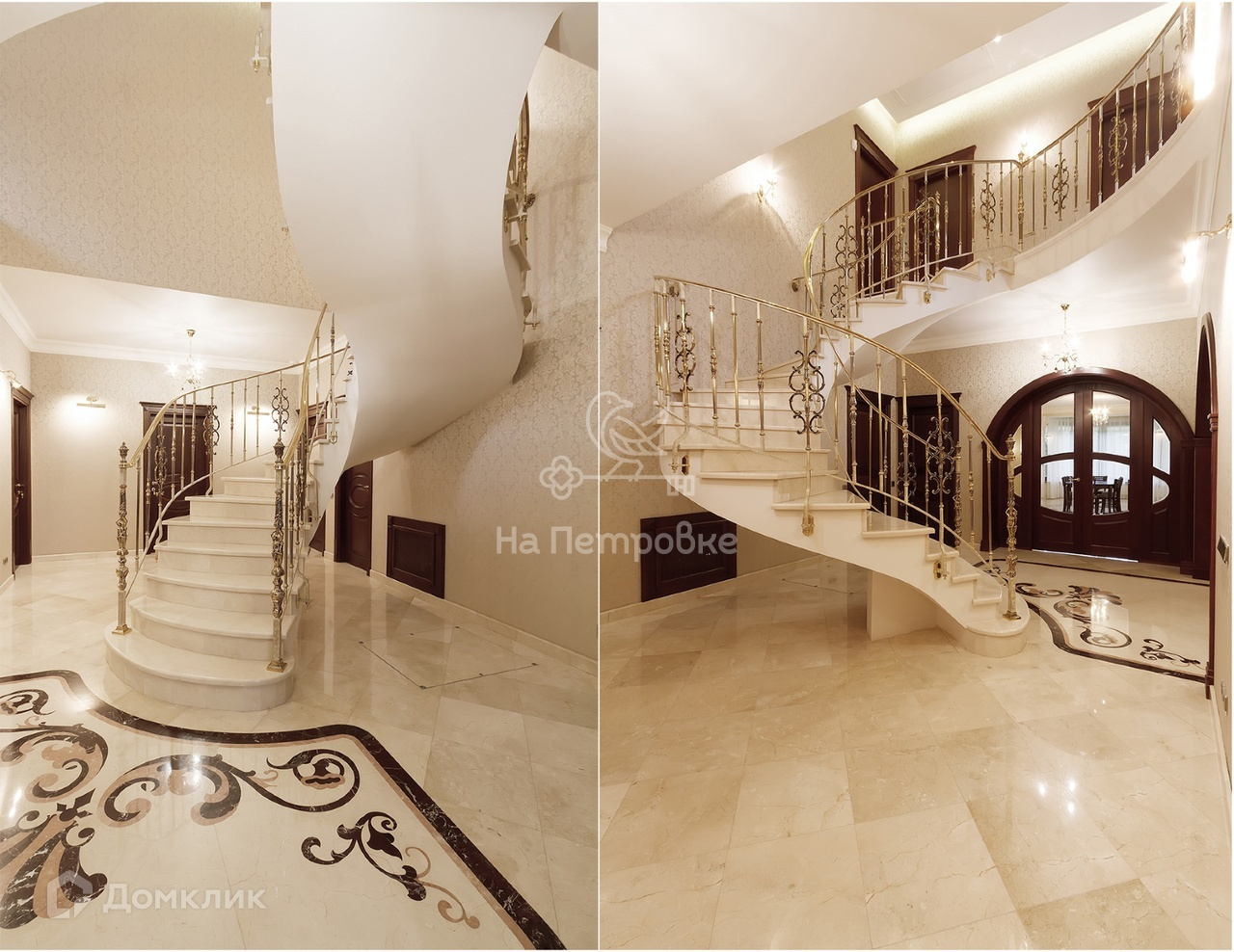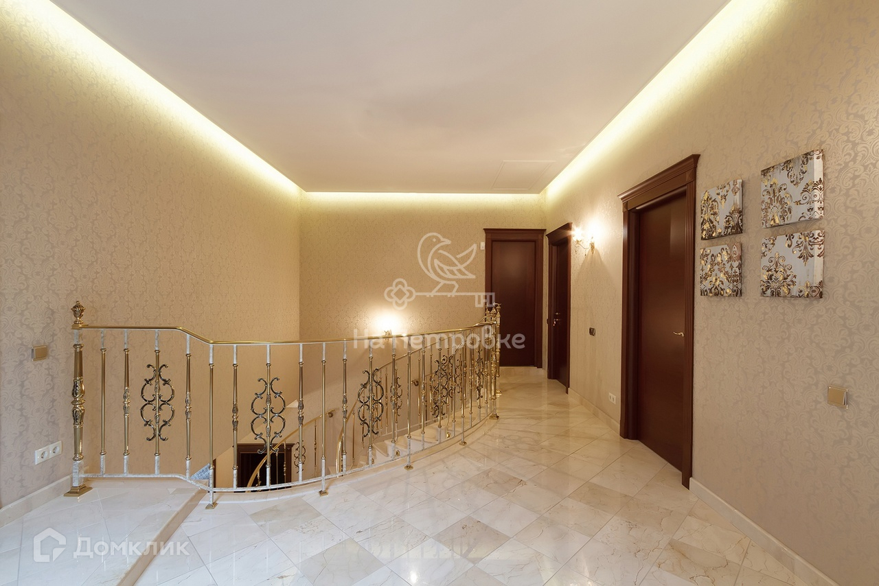 Дом возведен на монолитном фундаменте, облицован светлым керамическим кирпичом. Внутренняя отделка «под ключ» выдержана в гармоничном классическом стиле. При оформлении интерьеров применены высококачественные натуральные отделочные материалы. Мебель от ведущих итальянских производителей. В орнаменте полов первого этажа применено эффектное сочетание двух видов натурального мрамора. В жилых комнатах в качестве напольного покрытия выбрана паркетная доска из редкой породы красного дерева.