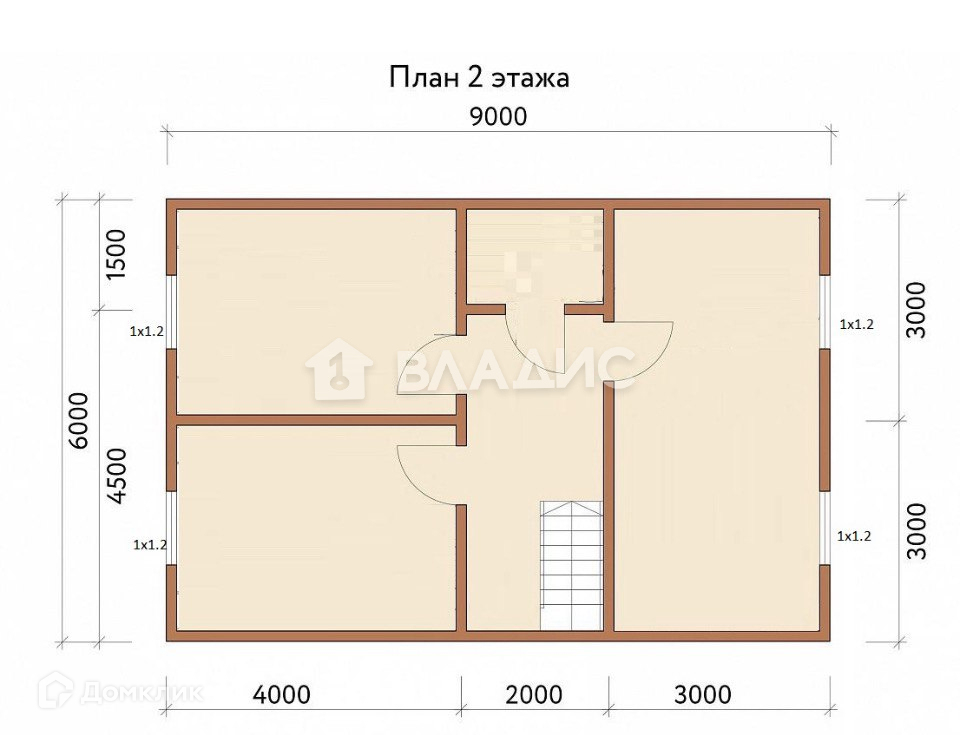 2й этаж 3 спальни, с/у совмещен.