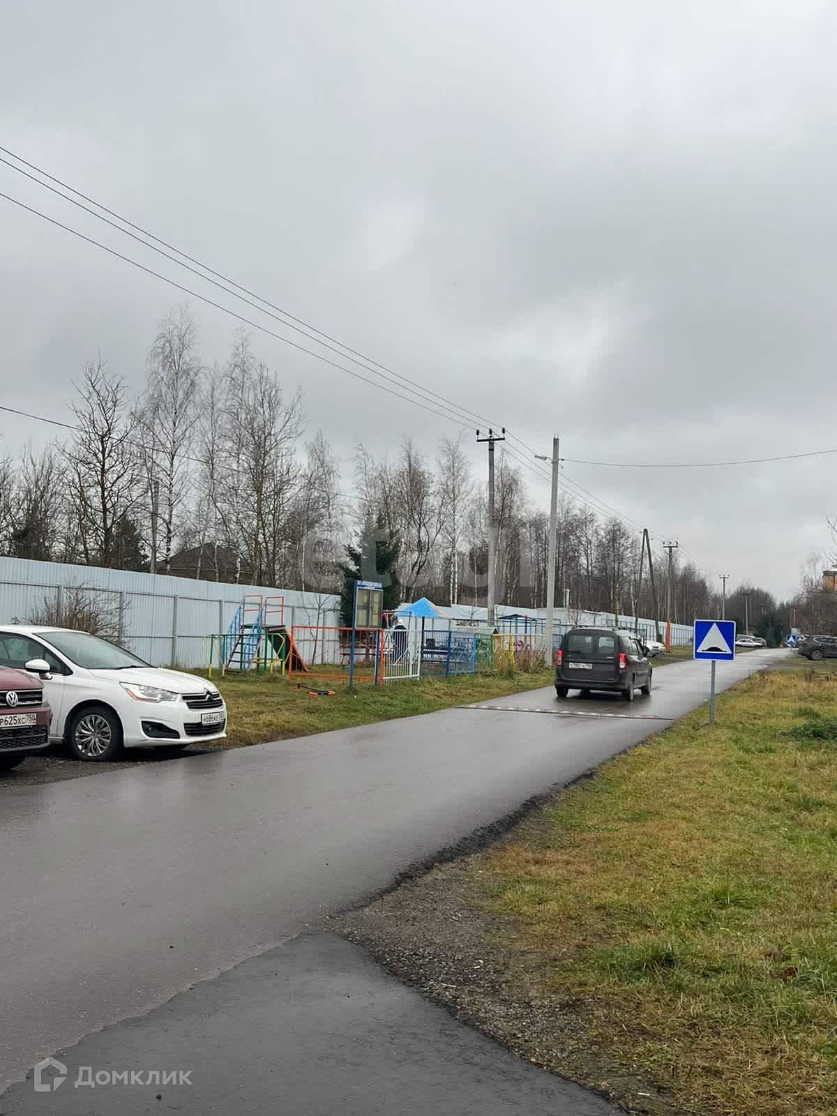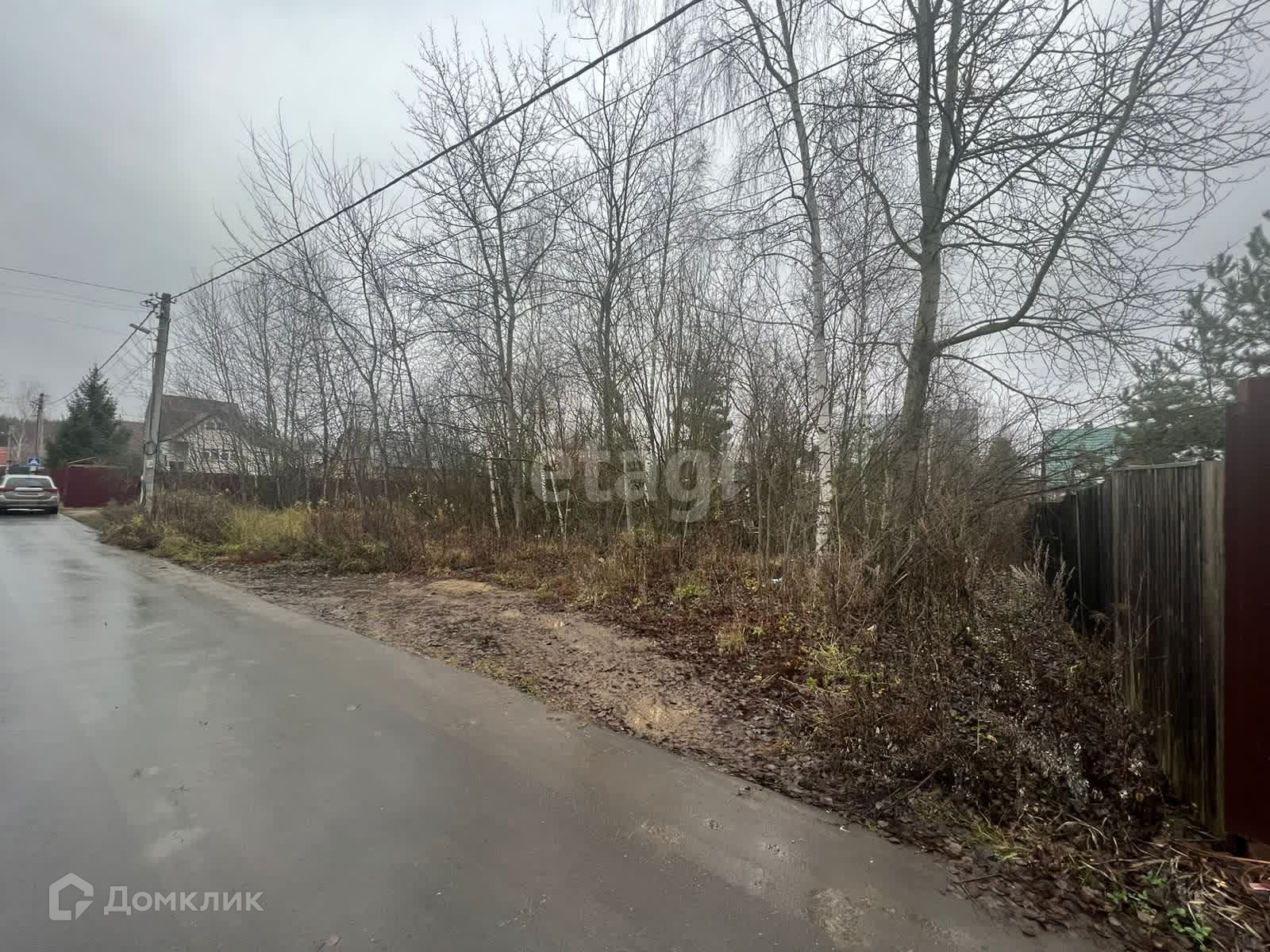 С трёх сторон забор (границы с соседними участками). Улица жилая, все дома заселены, люди живут круглогодично. На участке несколько пушистых молодых сосен, лиственные деревья. Строений нет - полностью готов для строительства нового дома!