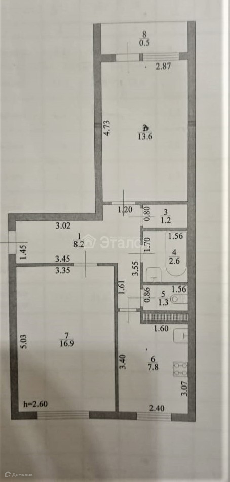 Площадь кухни 7.8 м2