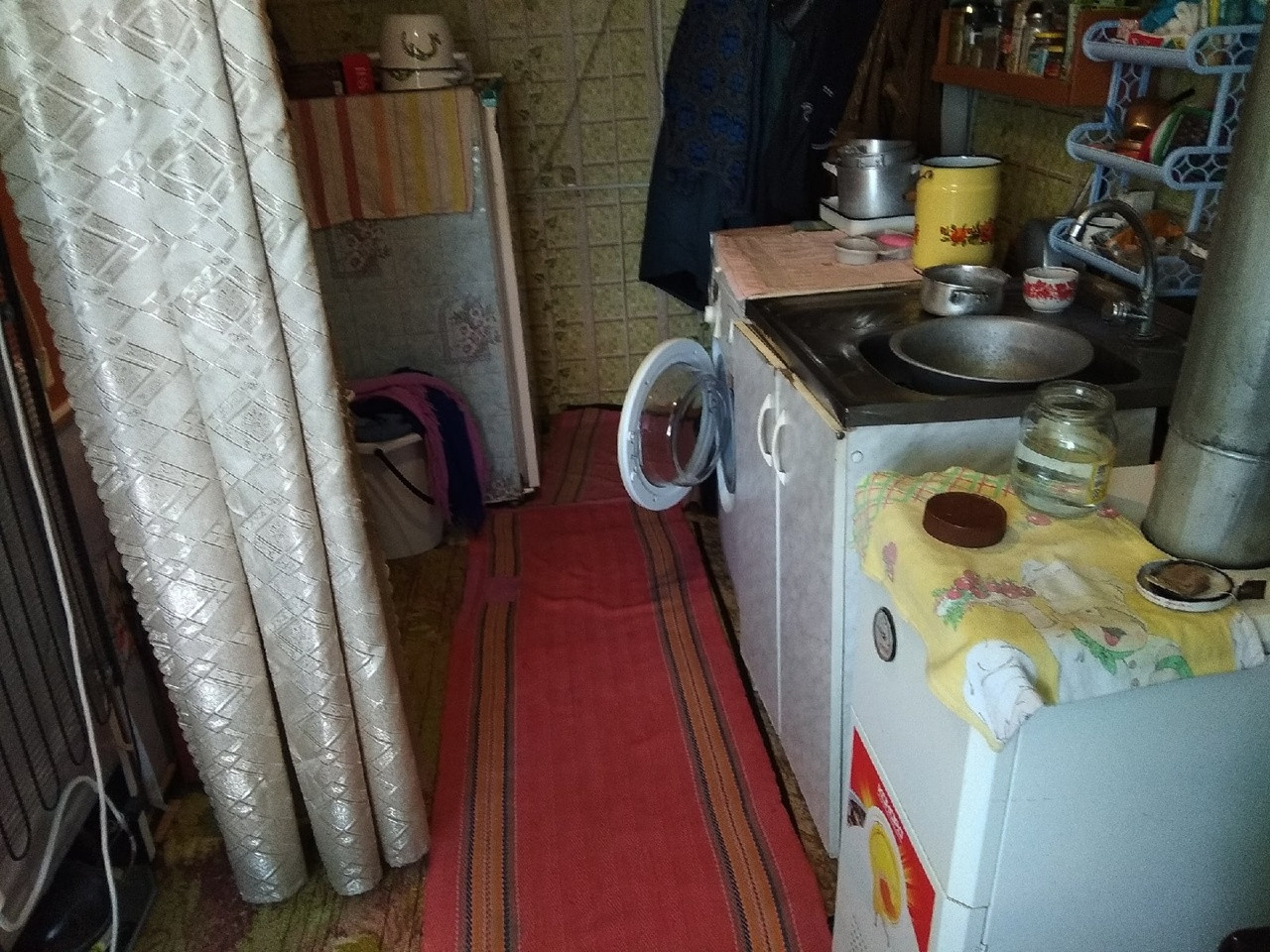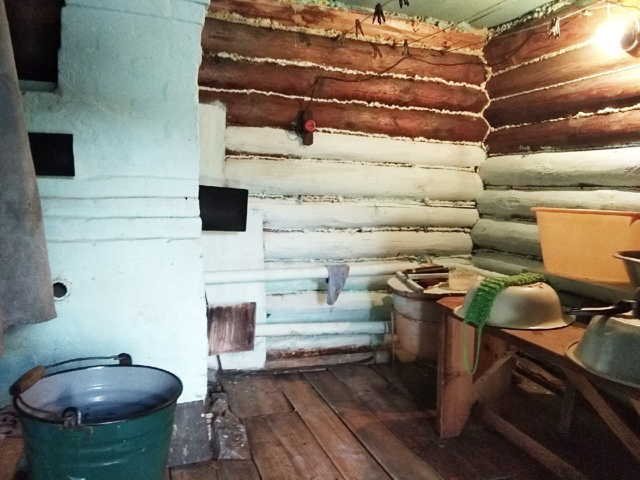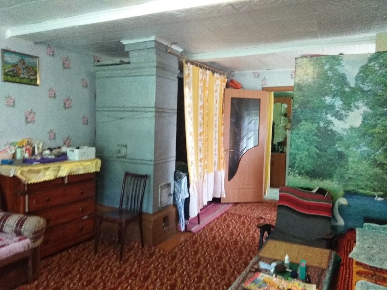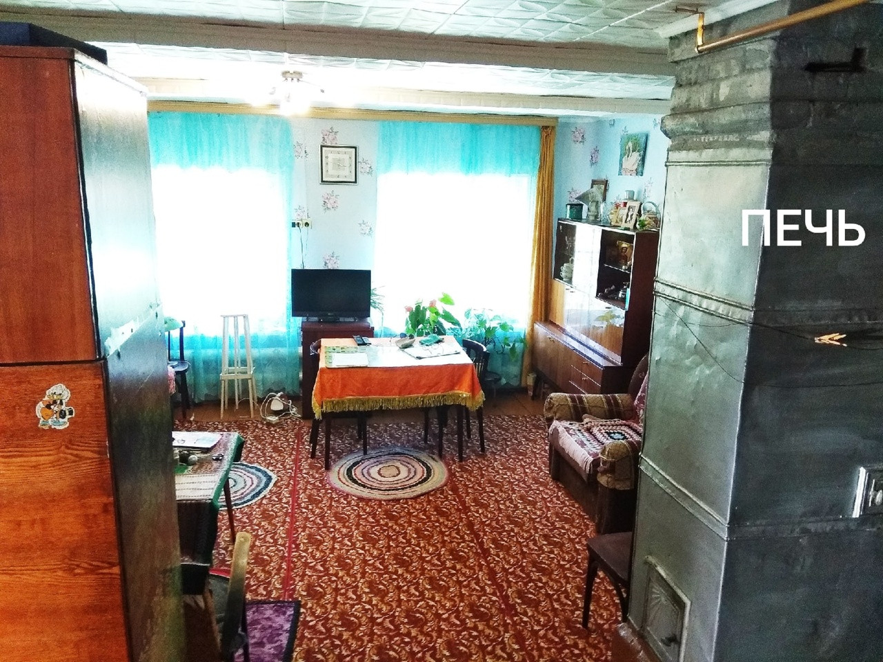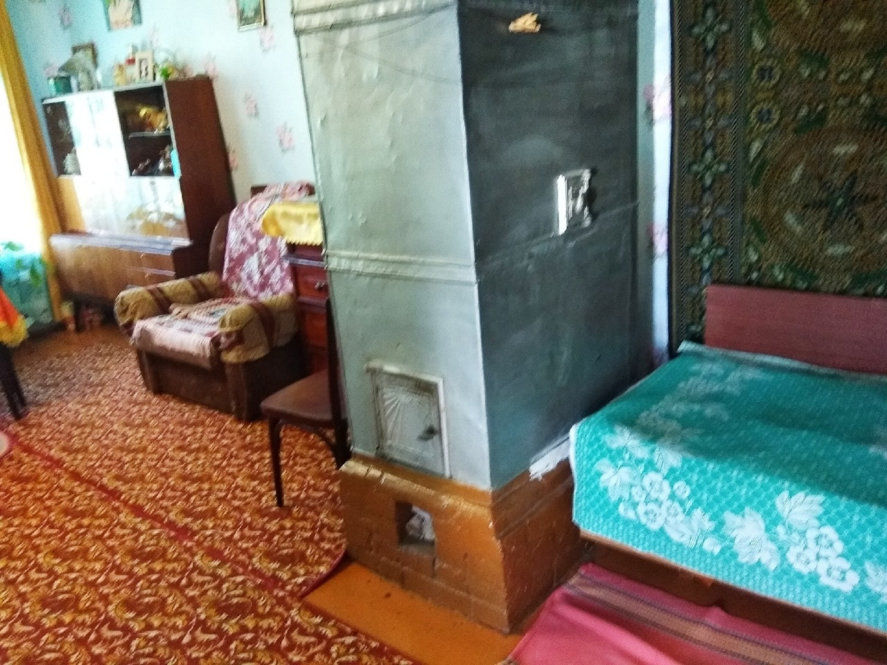 Печку оставили = в память о былом. Она действующая, крепкая, кирпичная, обшита железом.