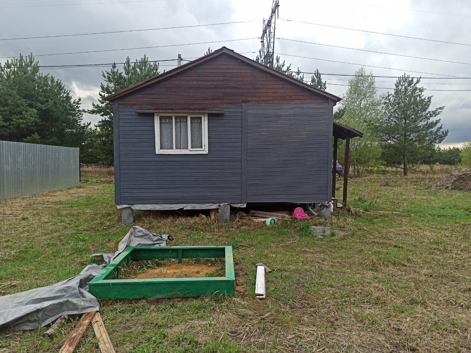 На участке стоит однотажный каркасный дом 30кв м