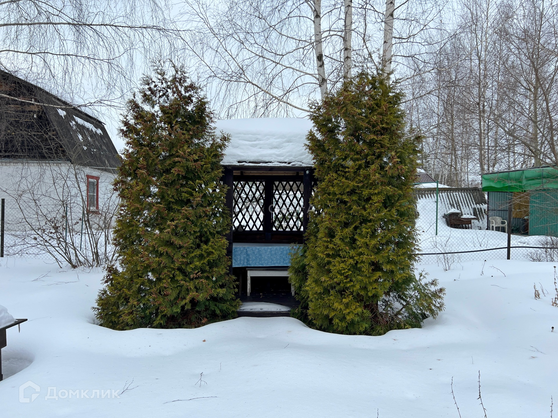 Так же на участке имеется отличная вместительная беседка с мангальной зоной, Кованные садовые качели.