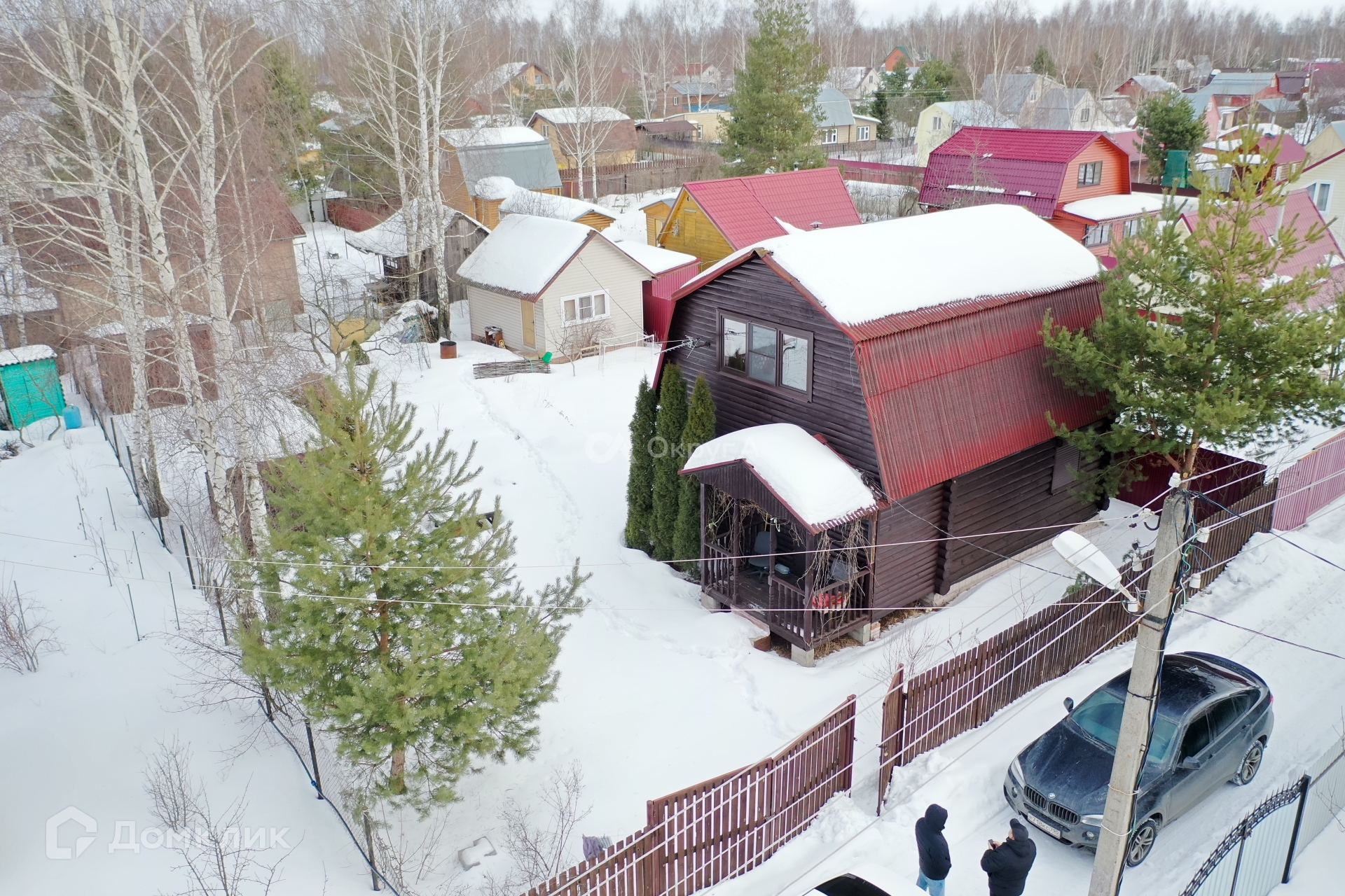 Участок 6 соток, правильной прямоугольной формы, огорожен забором, по участку проложены тропинки, участок приподнимался, делалась песчанная подушка и поверх завозился плодородный грунт, вода на участке не стоит, имеются ворота для заезда, перед домом место под два авто, на участке прекрасно растут плодово-ягодные культуры, две сосны, несколько Туй.