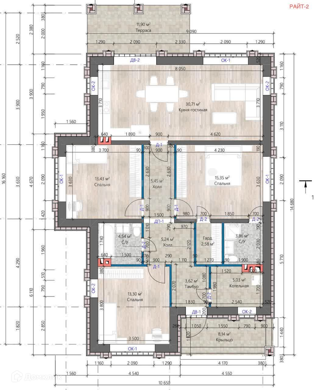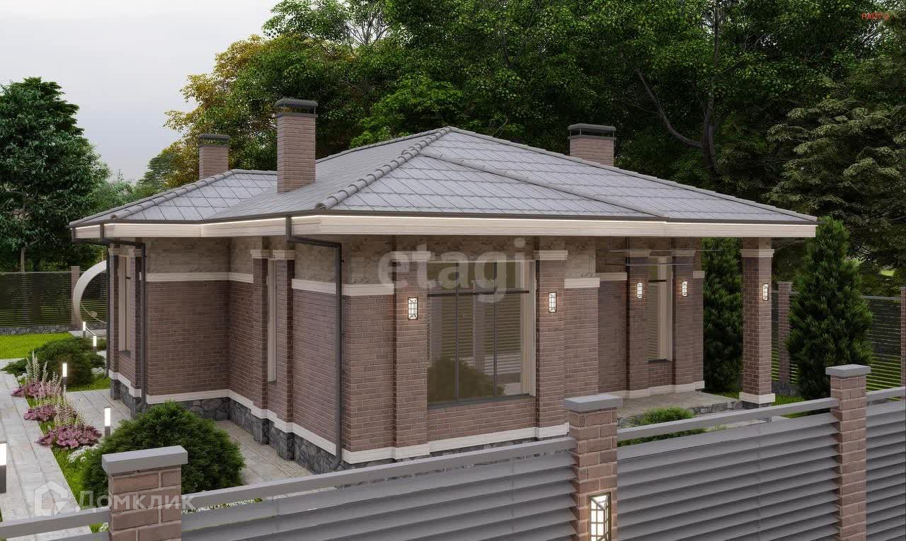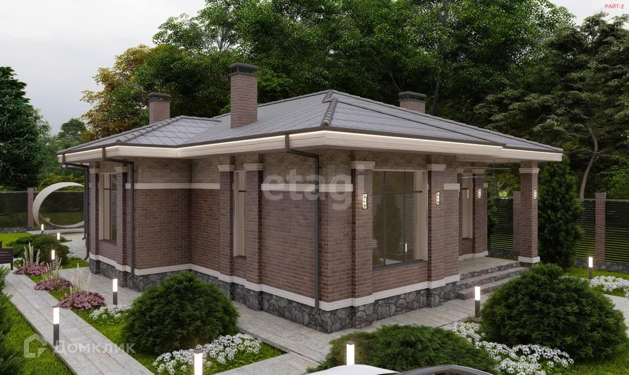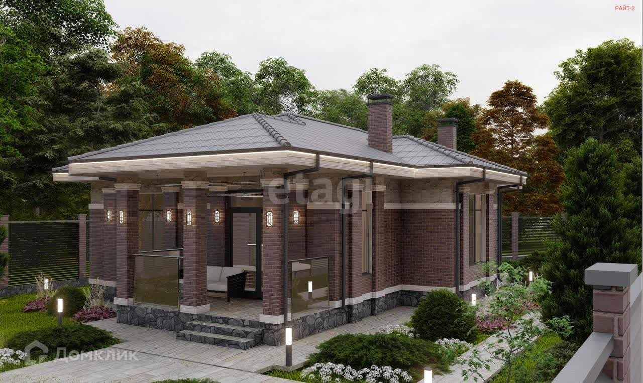 Дом одноэтажный, продуманная планировка: просторная кухня-гостинная, 3 спальни, 2 санузла, гардеробная комната, терасса 11 кв м. Дом будет выполнен из качественных материалов, облицовка декаративным камнем и несколькими видами кирпичом.