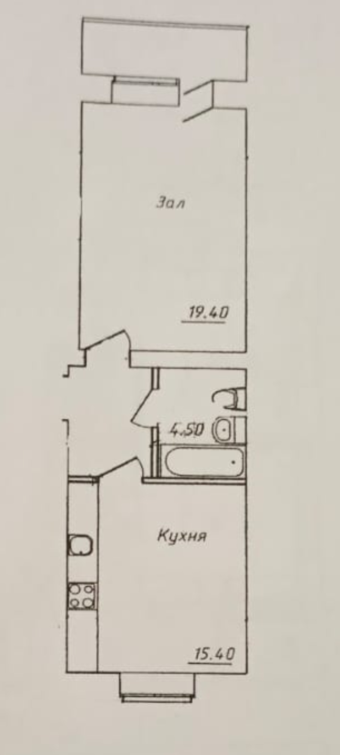 Жилая площадь 19.4 м2