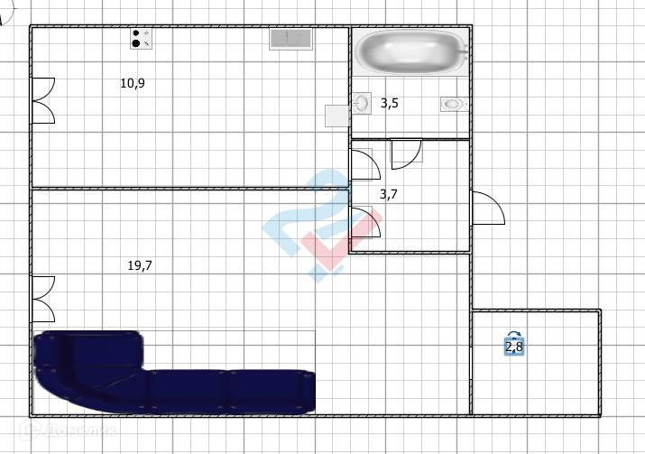 Жилая площадь 19.7 м2