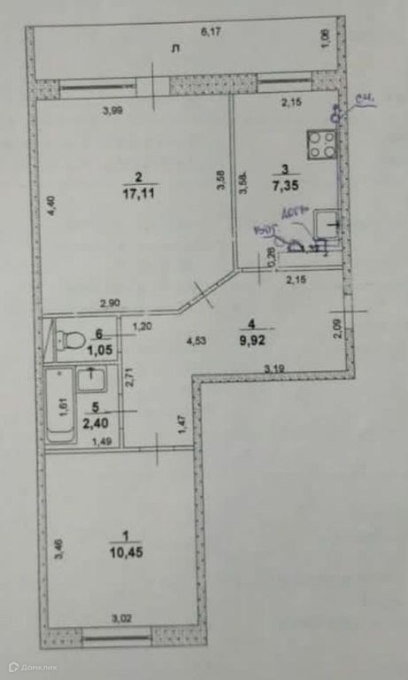 Общая площадь 51.6 м2