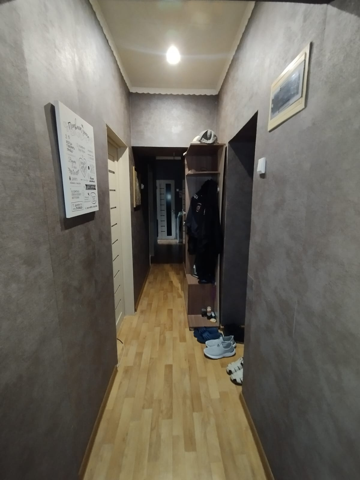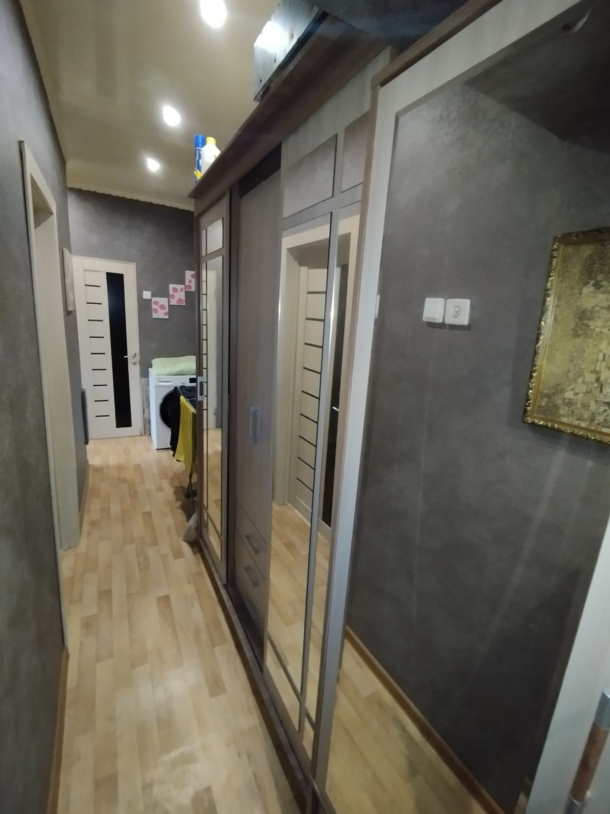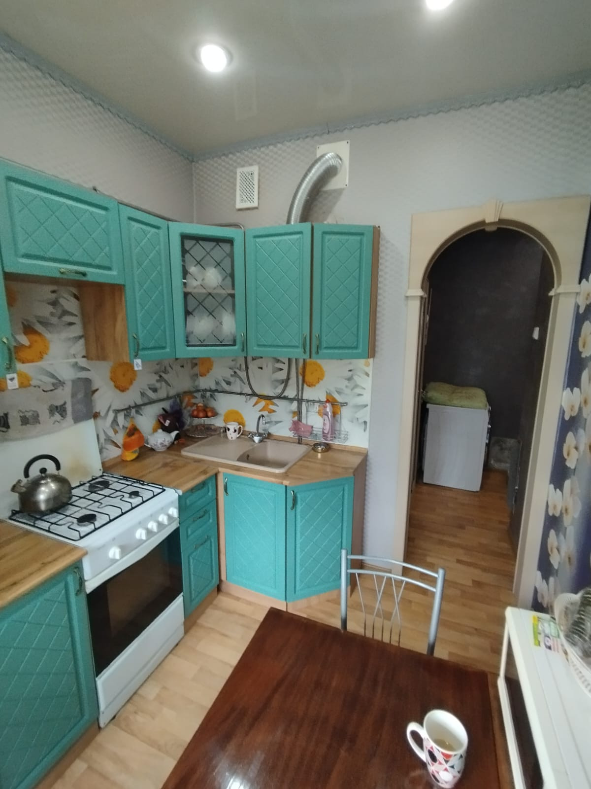 Квартира теплая, светлая, солнечная сторона, без посторонних запахов, сделан хороший ремонт, состояние видно на фото, окна все ПВХ, батареи биметалл, хорошая железная входная дверь, на кухне натяжной потолок, на полу линолеум, хорошие межкомнатные двери, в санузле установлена душевая кабина. В квартире все коммуникации центральные, кроме горячей воды, горячая вода от газовой колонки автомат, установлены счетчики на воду и газ, есть подполье для хранения заготовок. Перед окнами имеется небольшой участок. Соседи все хорошие и адекватные. Рядом с домом магазин и остановка общественного транспорта. В поселке есть школа, садик, магазины, почта, сбербанк. Остается кухонный гарнитур и розовая детская. Торг приветствуется.