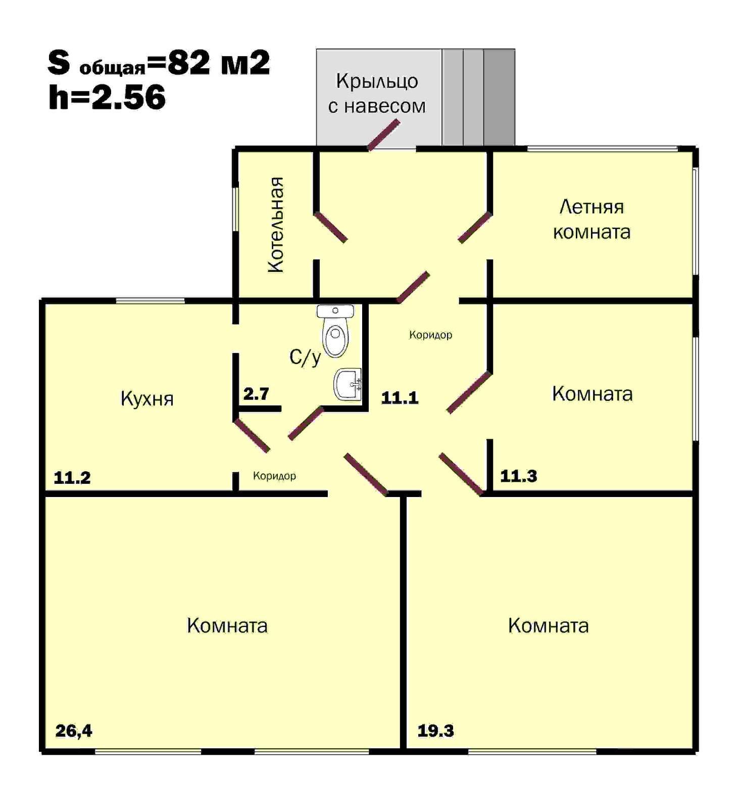 Общая площадь 82 м2