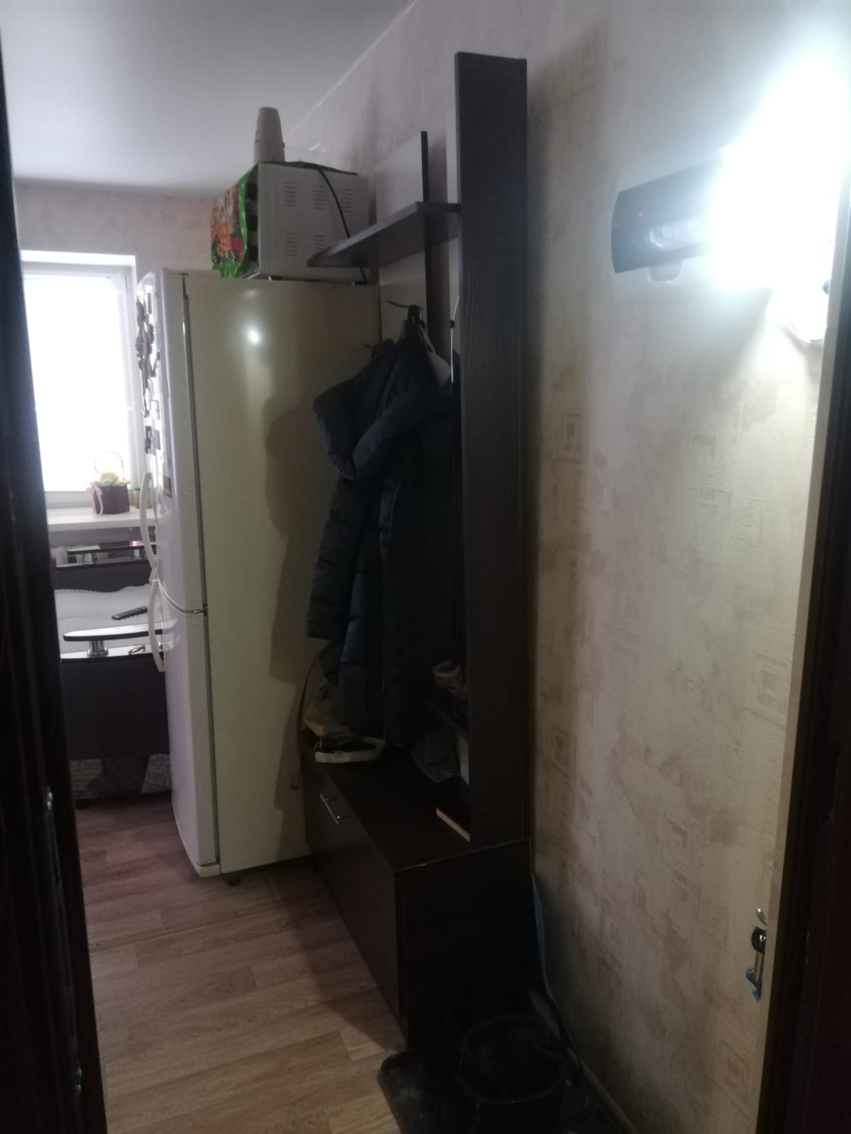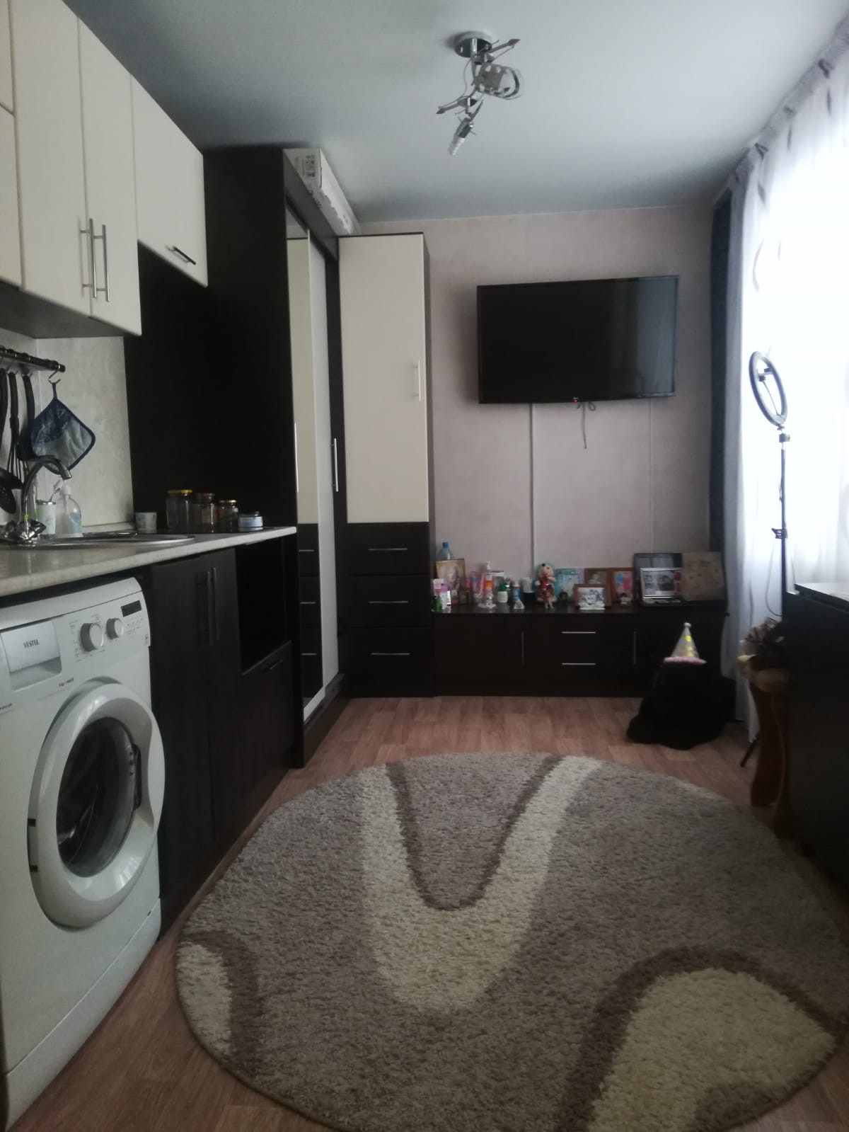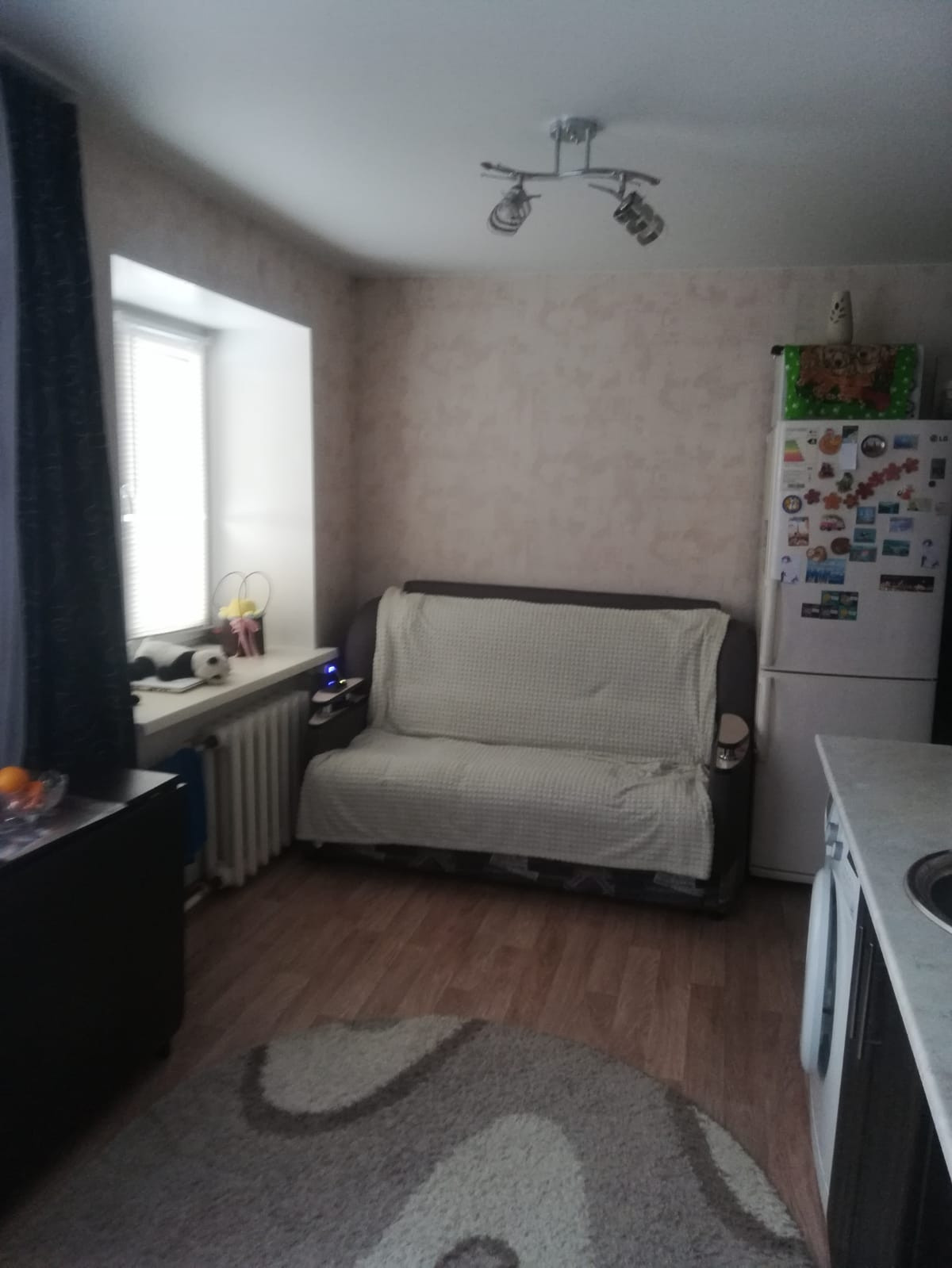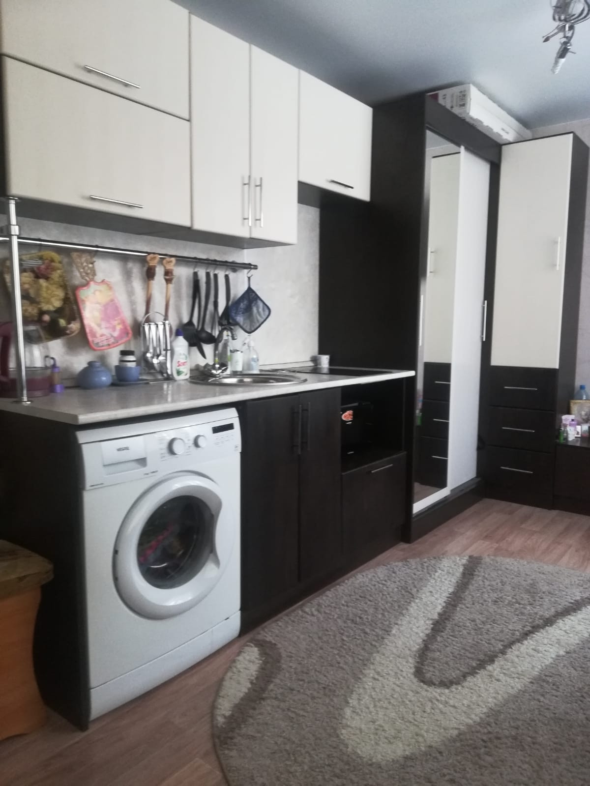 Уютная и светлая миниатюрная квартира-студия  в центре поселка, рядом торговые центры, школа, стадион, поликлиника, банки, остановка транспорта, 2 пластиковых окна, и это очень здорово, можно выделить дополнительную зону, натяжной потолок, хороший ремонт, в санузле современный кафель, установлены водосчетчики, в квартире тепло и светло, хорошее состояние подъезда и коридора, в коридоре 4 квартиры, остаётся кухонный гарнитур, шкаф-купе, плита, один собственник, любые виды расчёта, риэлторов прошу не беспокоить