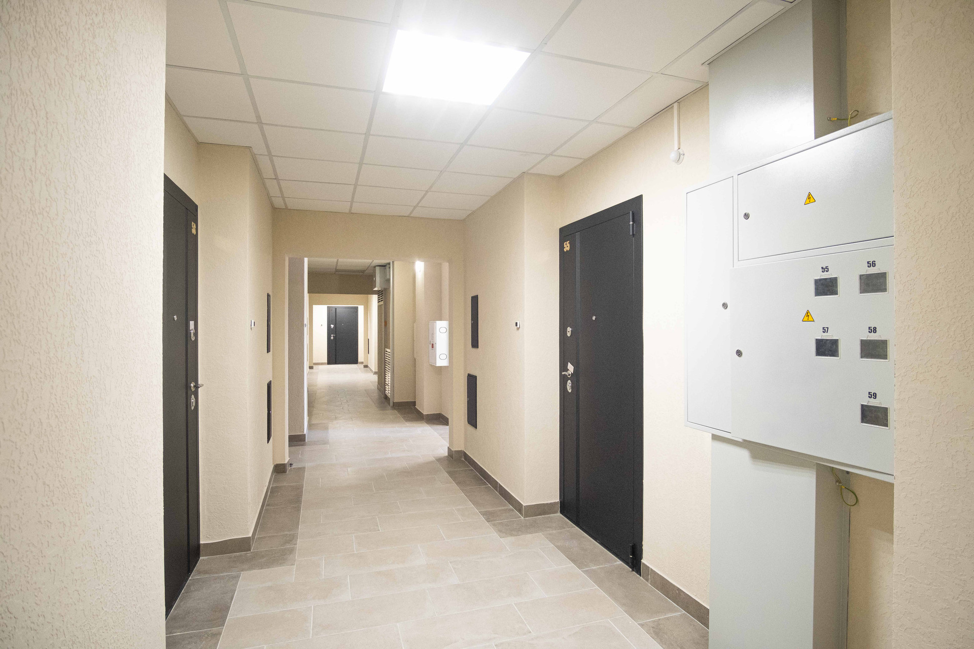 В доме кашированные стеклопакеты, стяжка со звукоизоляцией, подъезд оборудован пандусом, грузовым и пассажирским лифтами, разводка электричества с розетками, панорамное остекление лоджии.