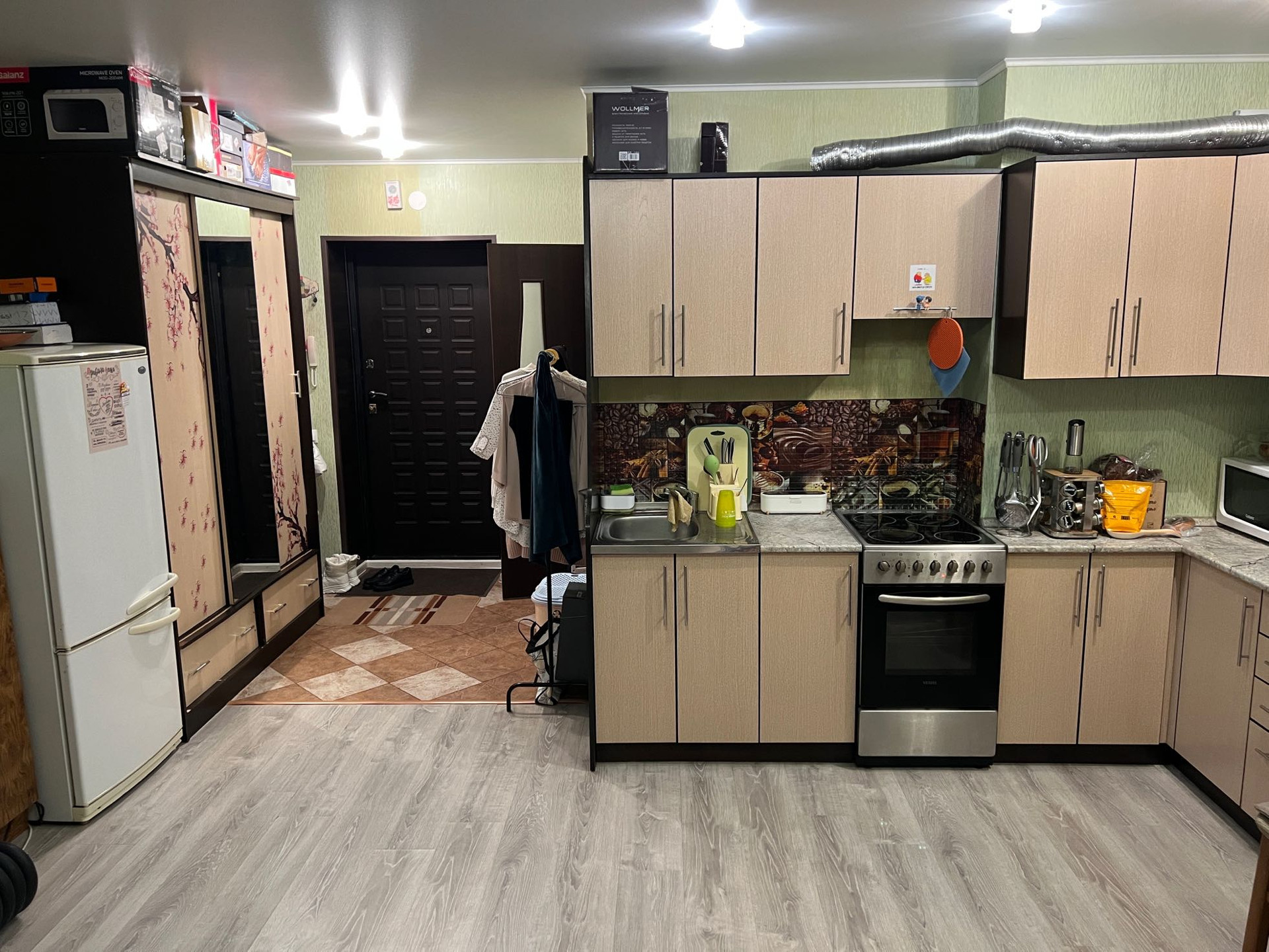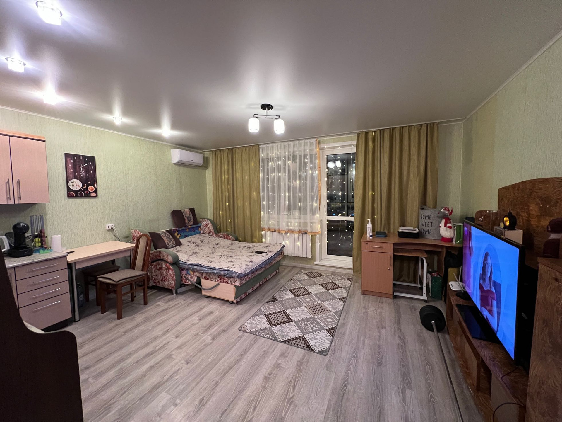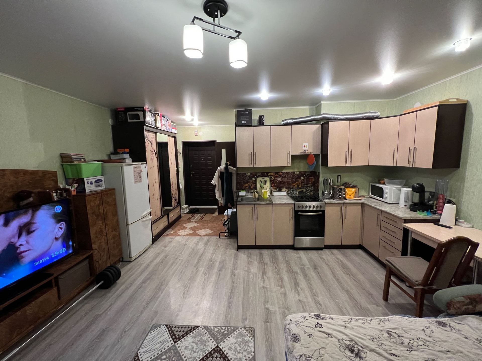 Уютный спальный район с развитой инфраструктурой: рядом школа, детский сад  поликлиника, магазины, хорошая транспортная развязка! Дом от лучшего застройщика, квартира удобной планировки, просторная студия, сделан хороший ремонт, остаётся, кухонный гарнитур с Эл плитой, встроенные шкафы, взрослый собственник, более 5 лет собственность, без обременения!
