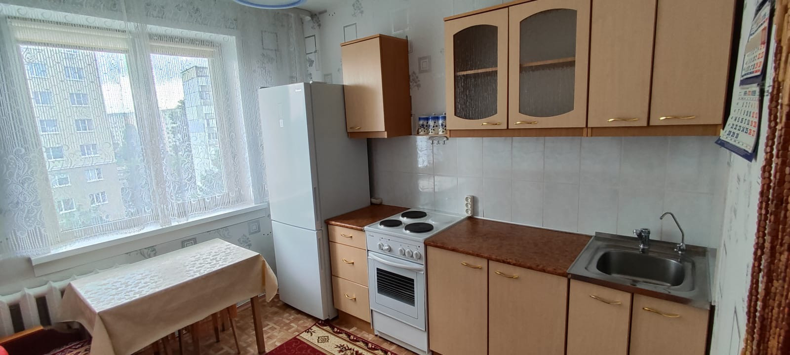Уютный спальный район с развитой инфраструктурой: рядом школа, детский сад, поликлиника, магазины, отличная транспортная развязка! Квартира 97 серии просторная кухня и квадратный зал,сделан косметический ремонт! В квартире остается: кухонный гарнитур, новая электроплита, диван, стенка в зале, стол. Взрослый собственник, более 5 лет право собственности.