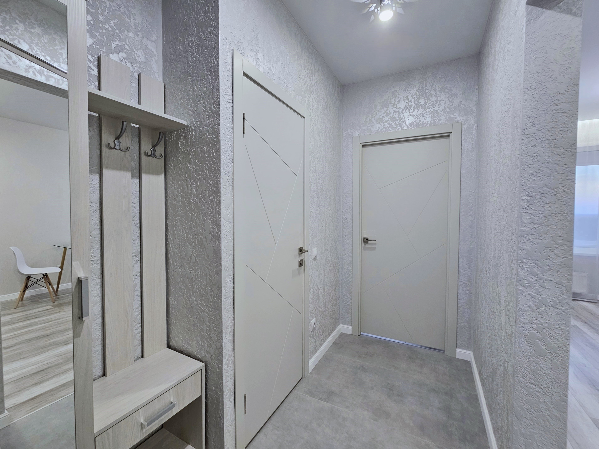 — При ремонте использованы качественные и современные материалы: керамогранит, европейская сантехника, двери с эффектом патины, крашенные высокие плинтуса, декоративная штукатурка, светодиодная подсветка и элементы освещения, и другое. Вся мебель новая. Фурнитура с автоматическими доводчиками.