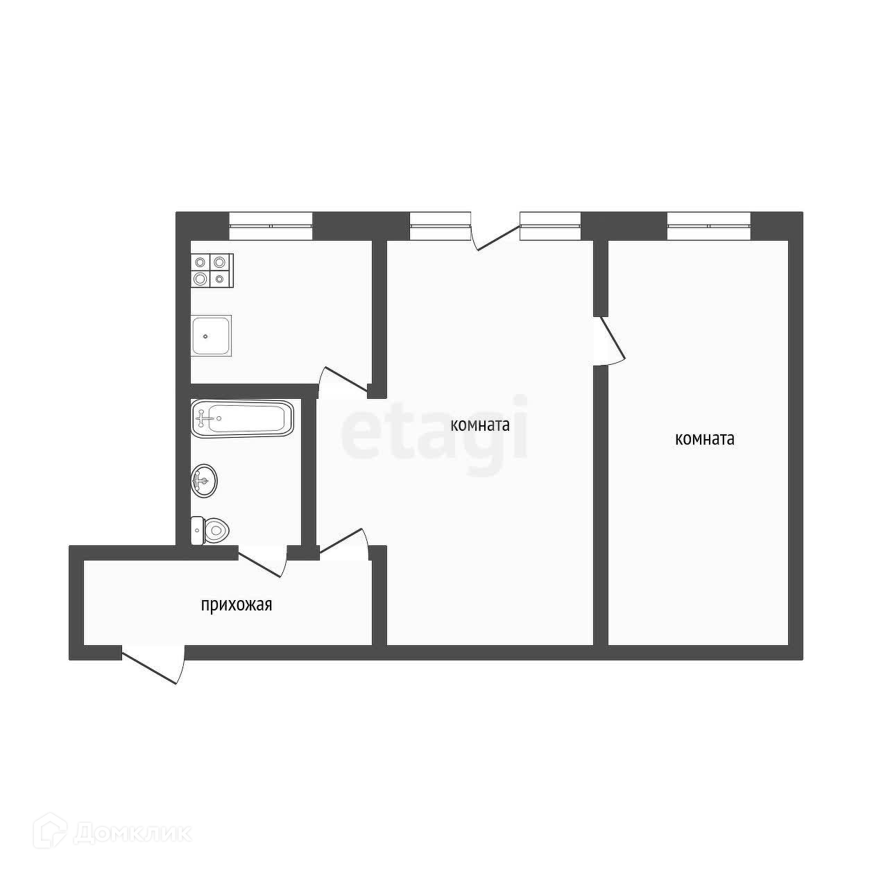 2-комнатная квартира, 46.1 м2, этаж 2 / 4, на продажу в рабочем поселке Южном, проспект Дзержинского, 25А