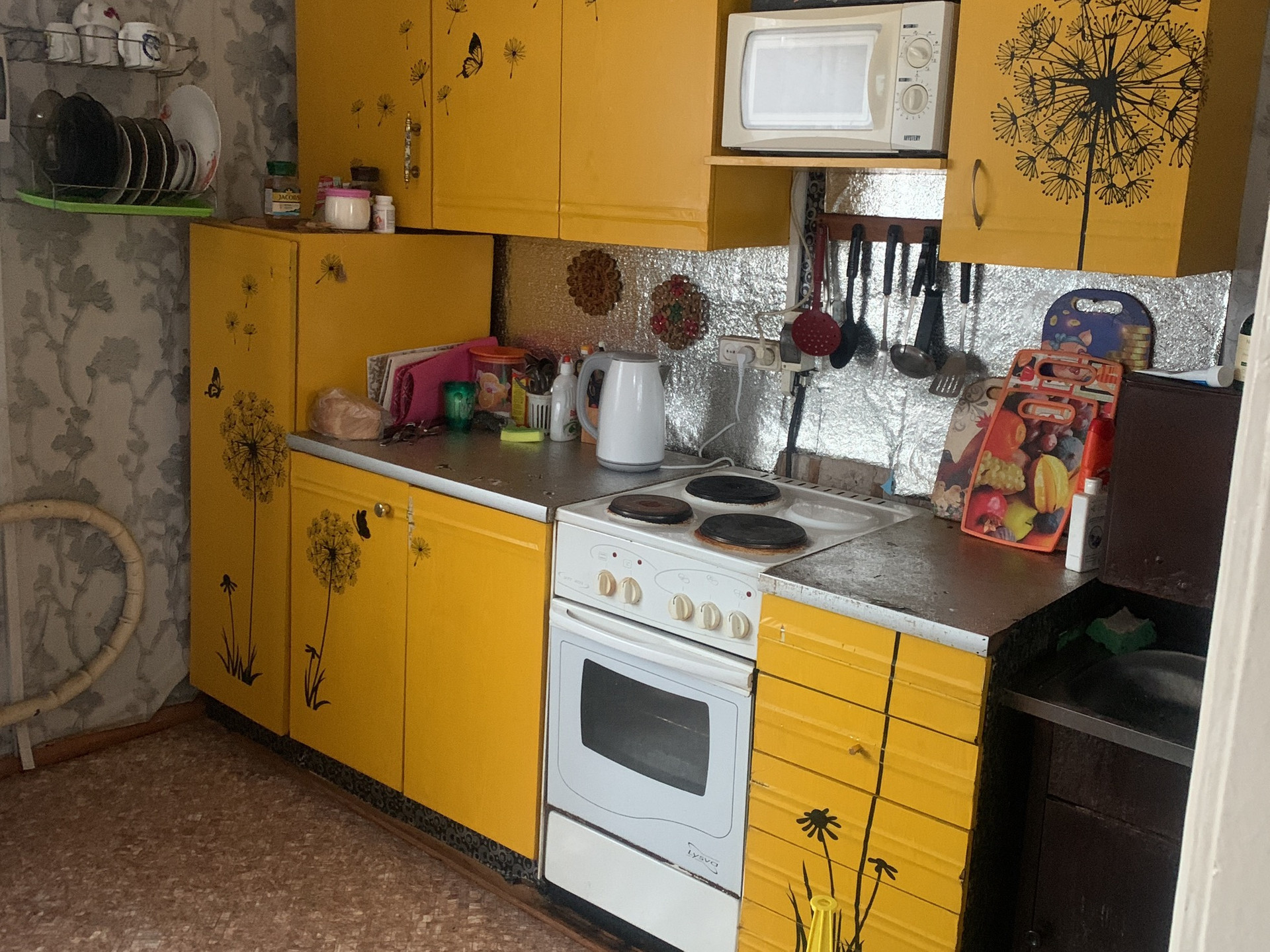 Продается просторная 3-х комнатная квартира. Огород 3 сотки, баня, навес для дров. Частично мебелированая.