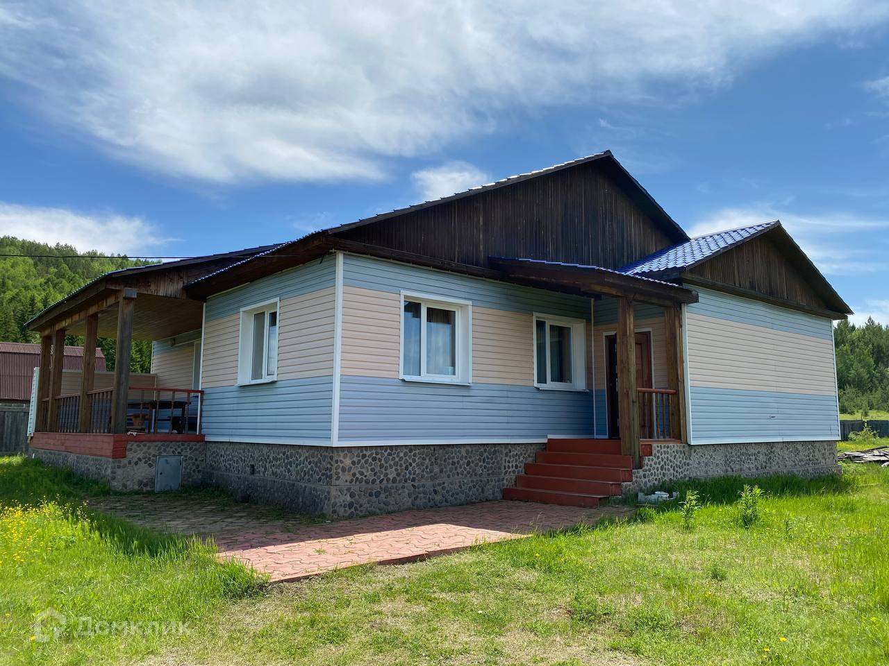 Дом из блоков и кирпича на ленточном фундаменте, обшит сайдингом. Крыша профлист. В доме сделан качественный ремонт, септик, скважина, есть своя большая печь, электричество.