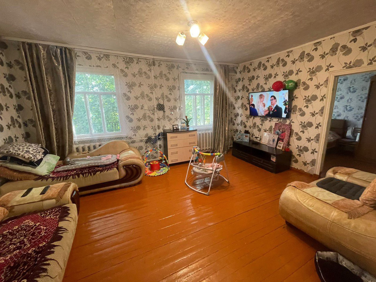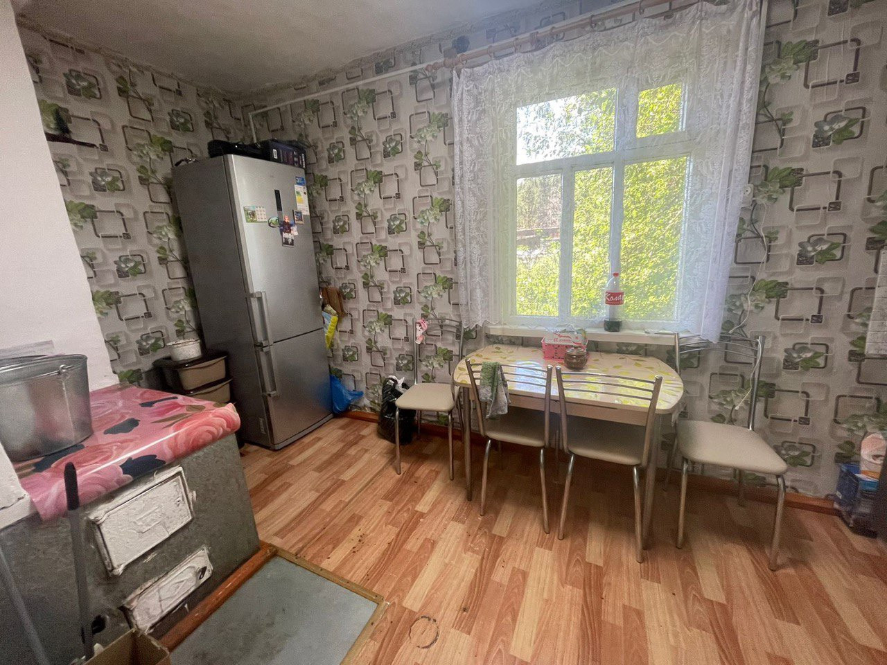 Продаем трехкомнатную квартиру в двухквартирном доме, с верандой и кладовой, косметический ремонт, отопление электрическое (бойлер) и печное