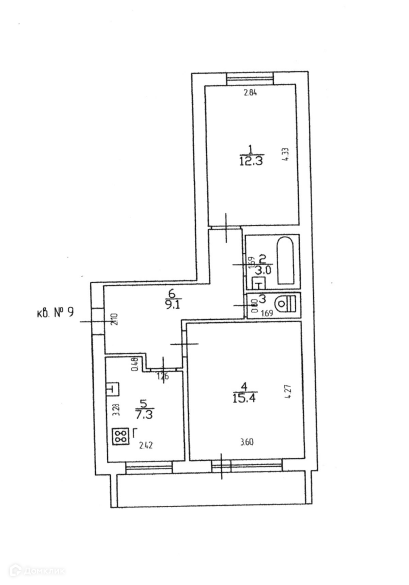 Площадь комнат (кв. м.): 12.30, 15.40