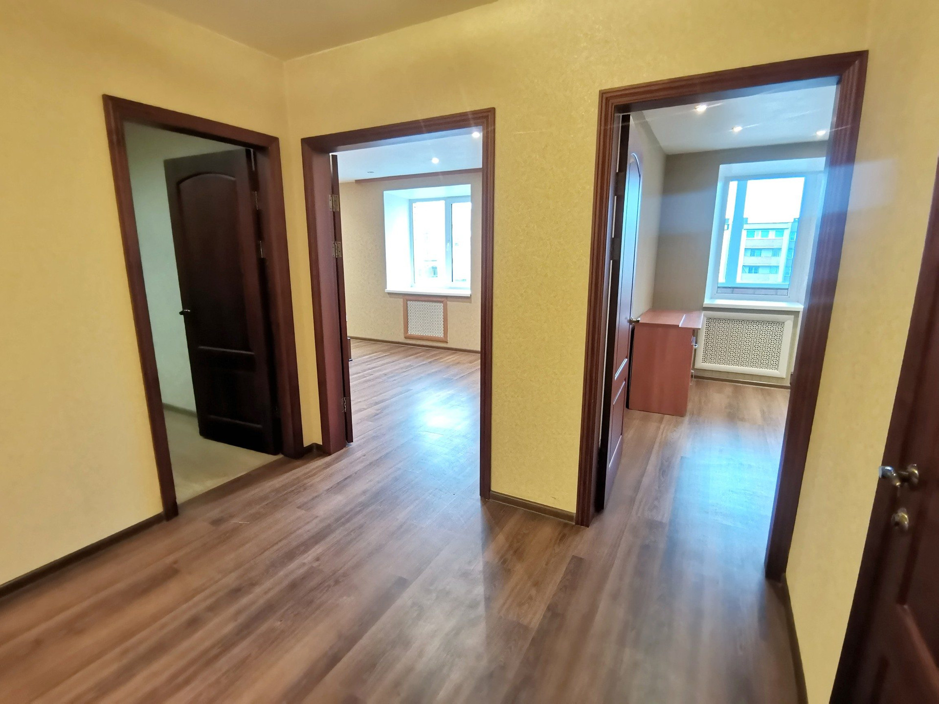 ☘️Квартира очень просторная и светлая. В 2015 году был выполнен капитальный ремонт из качественных отделочных материалов. Выровнены стены, батареи закрыты фальшстеной. Полы ламинат и кафельная плитка, хорошие межкомнатные двери, новая железная входная дверь. Подвесные потолки с точечным освящением. Выполннна дополнительная разводка электрики. Деревянная лестница для подъёма на второй этаж. Остекление окон ПВХ. В квартире остаётся все что вы видите на фото.