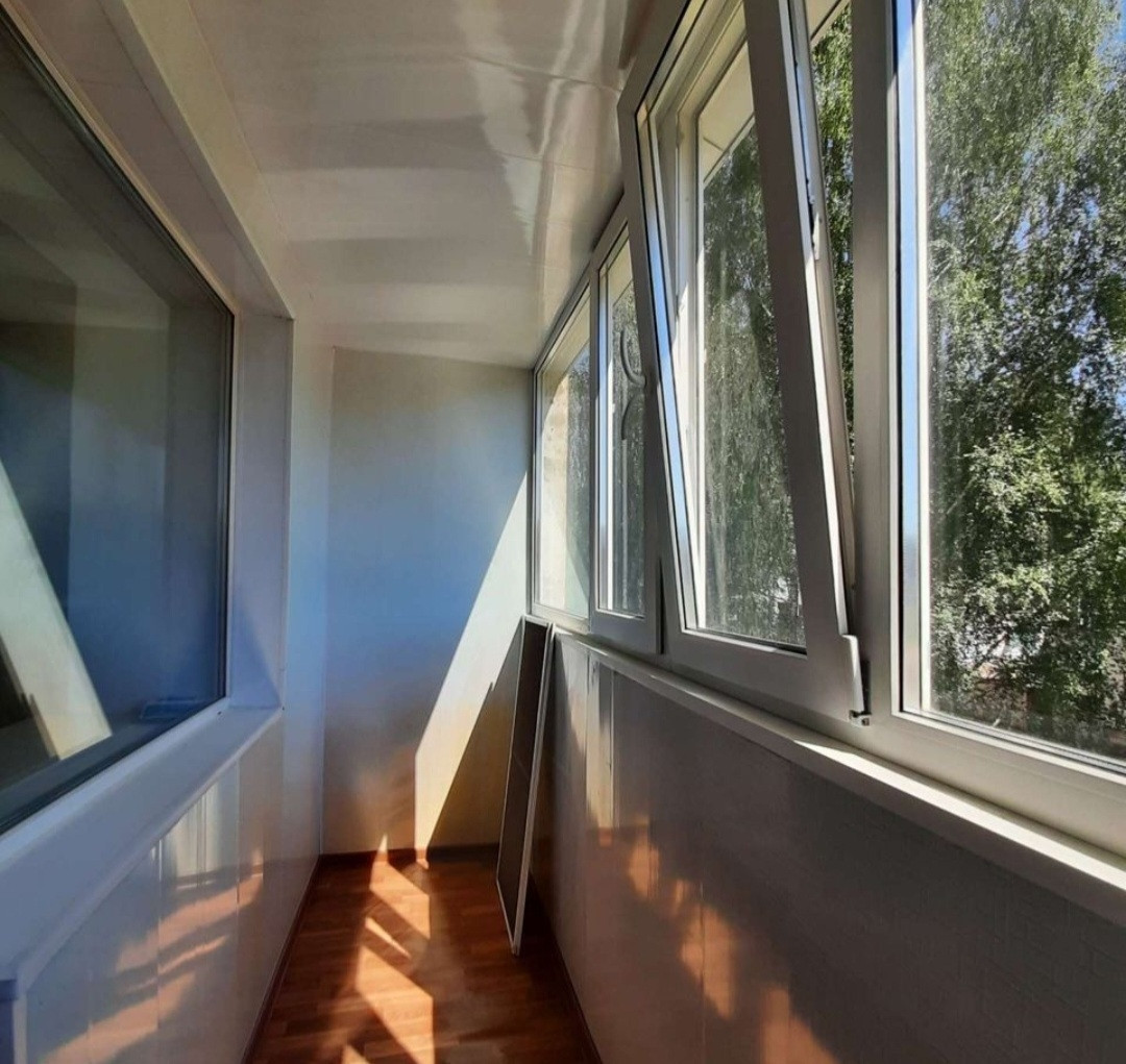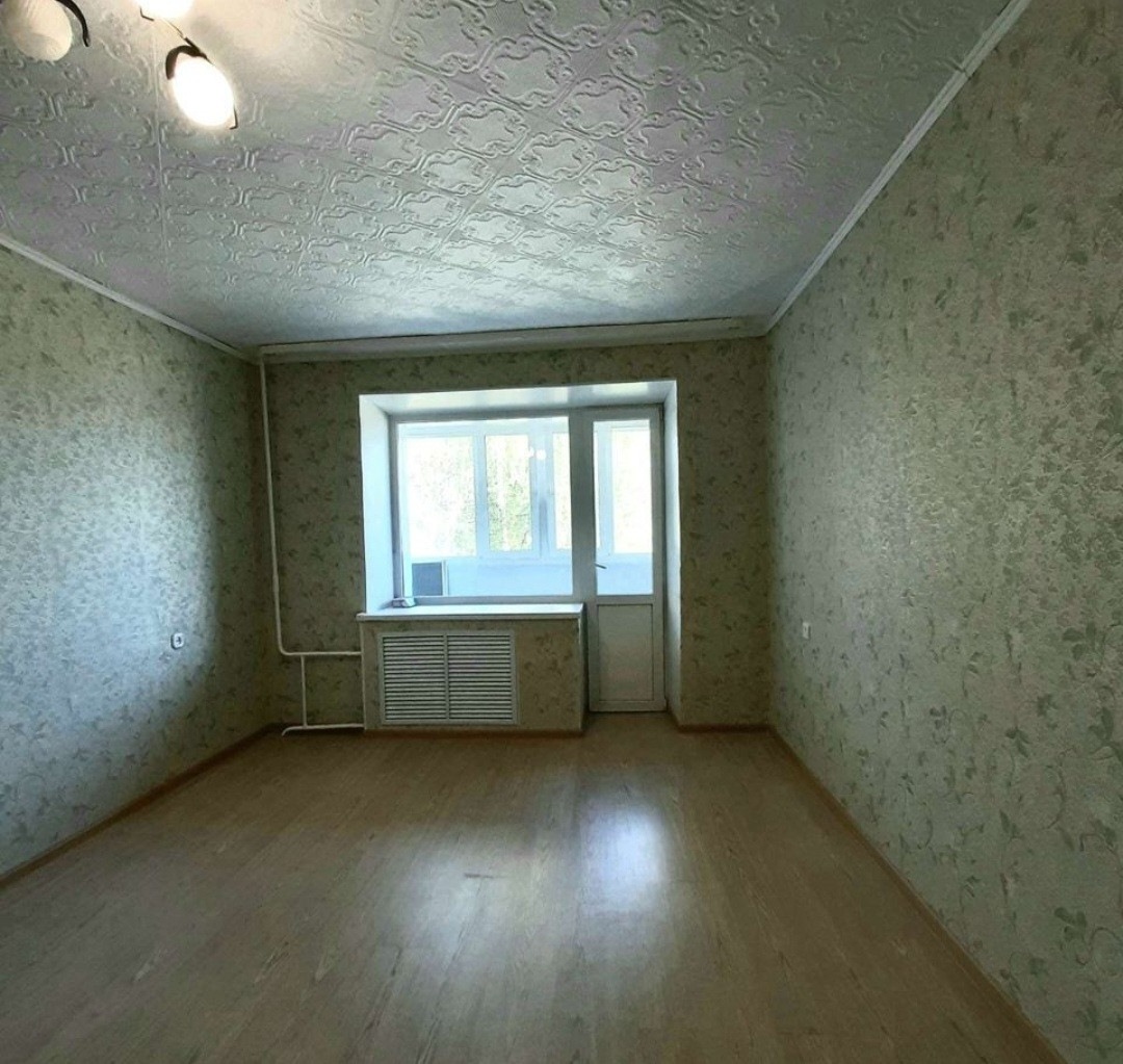 Большая кухня 9 кв.м и комната с местом под гардеробную. Санузел совмещённый. Стеклопакеты.