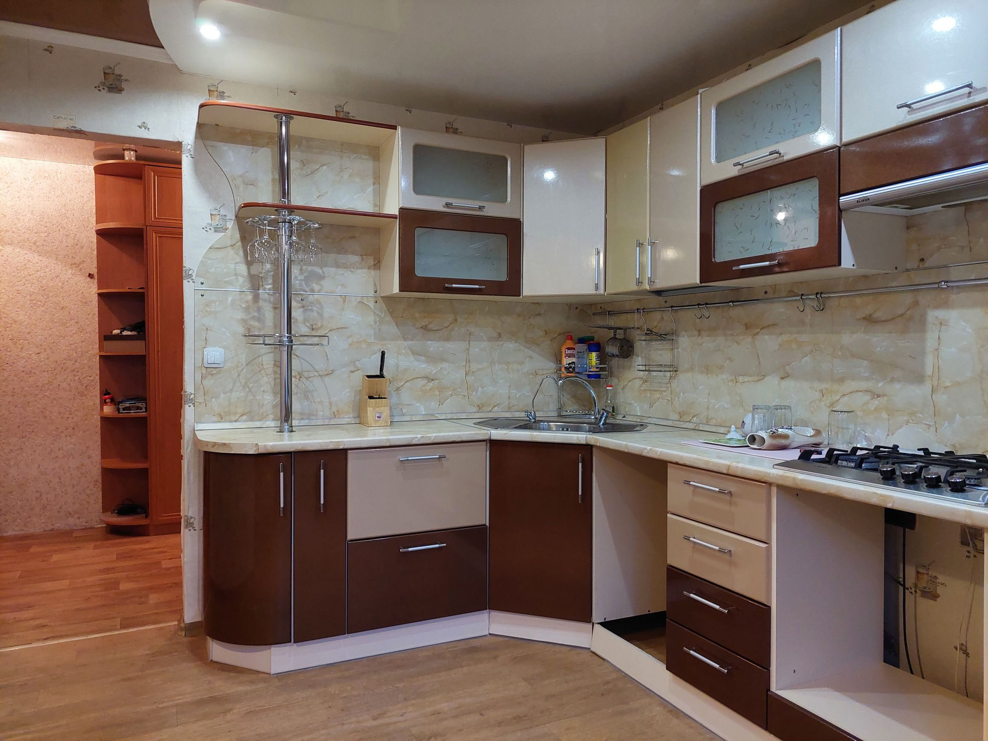 Кухонный гарнитур с варочной панелью и вытяжкой останется новым хозяевам.