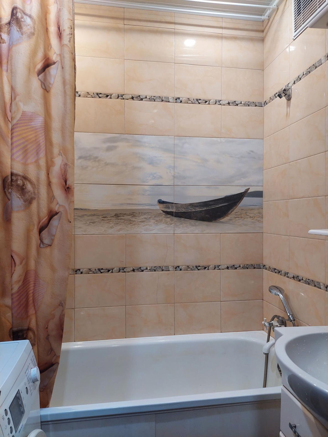 Санузел в кафеле, разводка труб заменена.