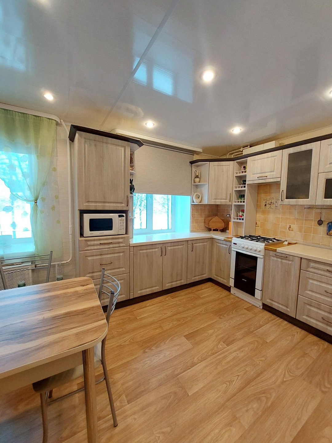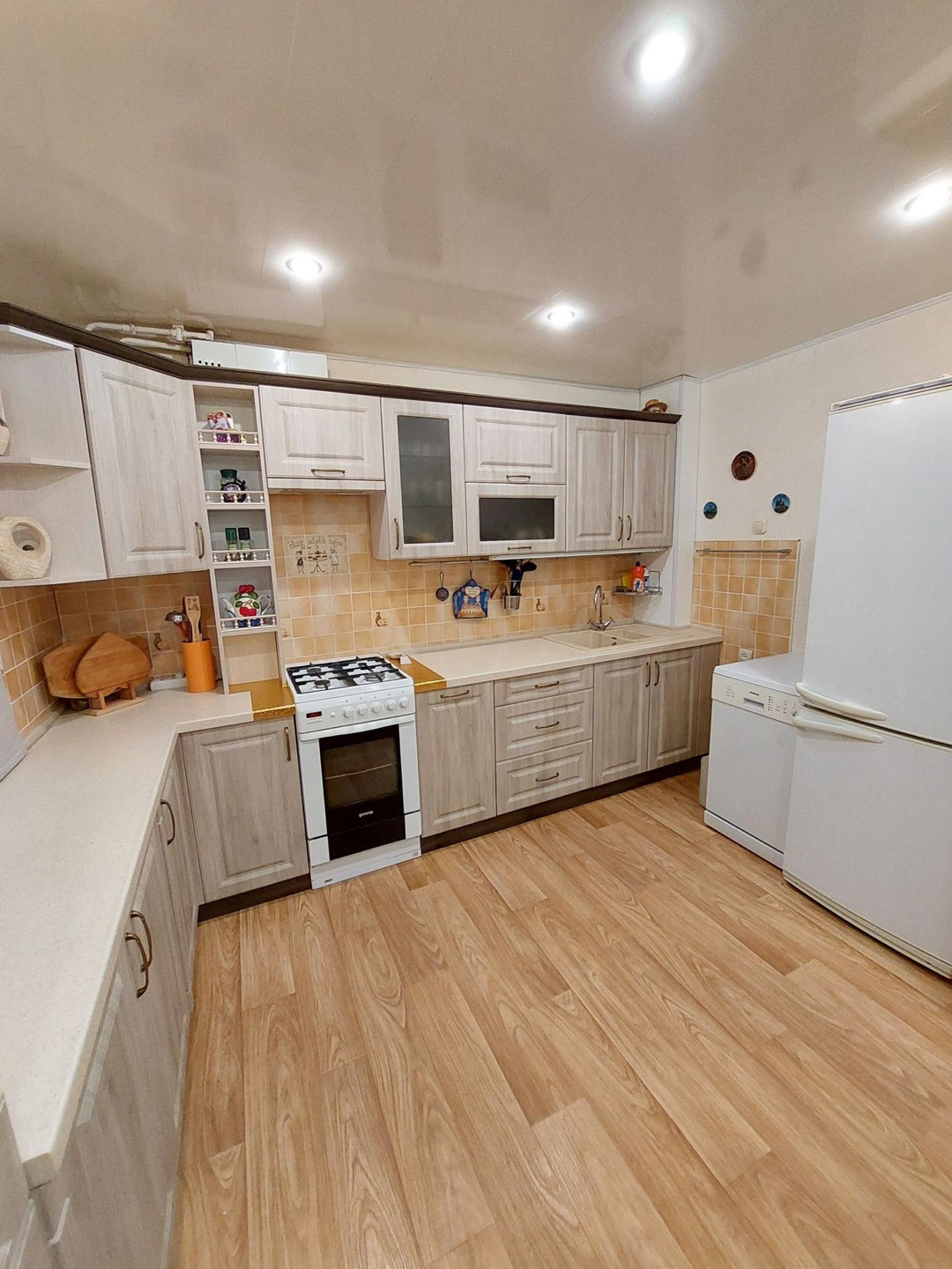 Из техники остаётся холодильник, микроволновка, стиральная машина, посудомоечная машина, газовая плита, вытяжка.