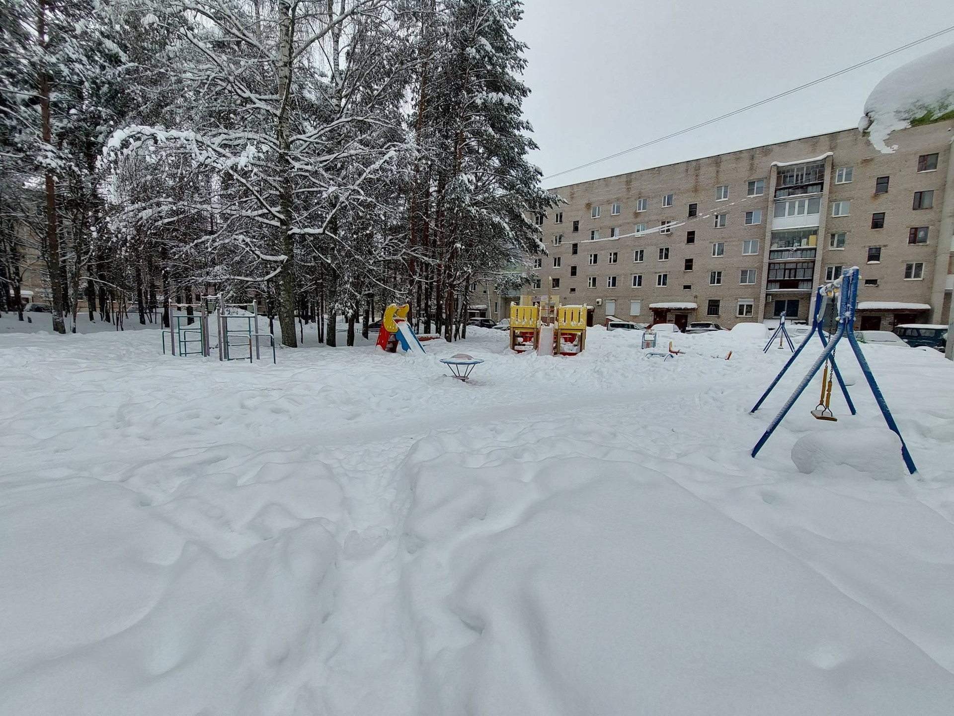 Во дворе имеется детская площадка, свободная парковка автомобиля.