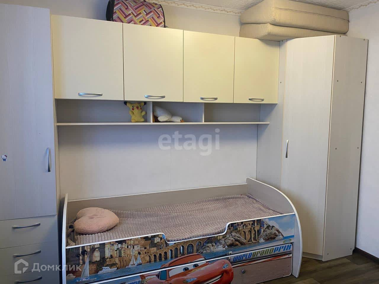 В квартире остаётся: стиральная машинка, холодильник, вся мебель детской комнаты, гостиной и на кухне, диван.