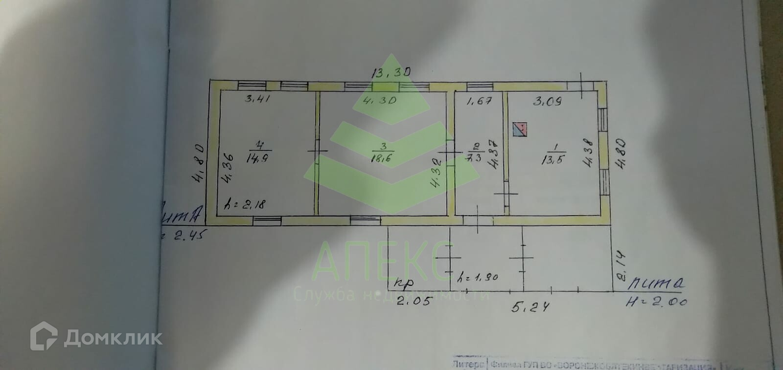 Общая площадь 54.3 м2