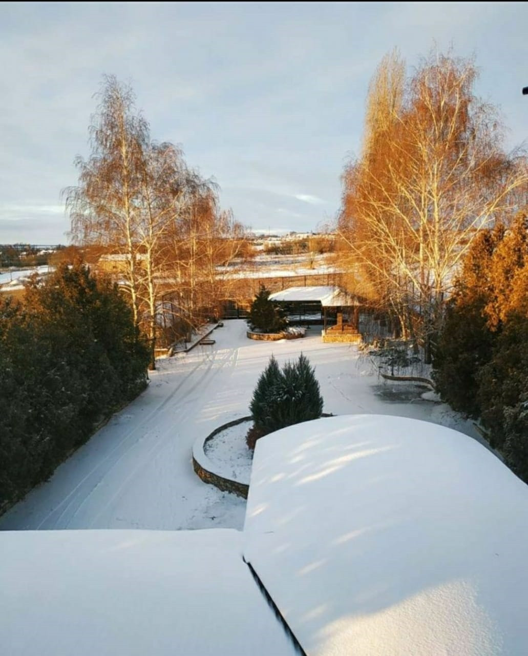 Облагороженный участок с живой изгородью из туй и берёз, участок забетонирован, есть просторная беседка с зоной мангала, барбекю, летняя кухня.