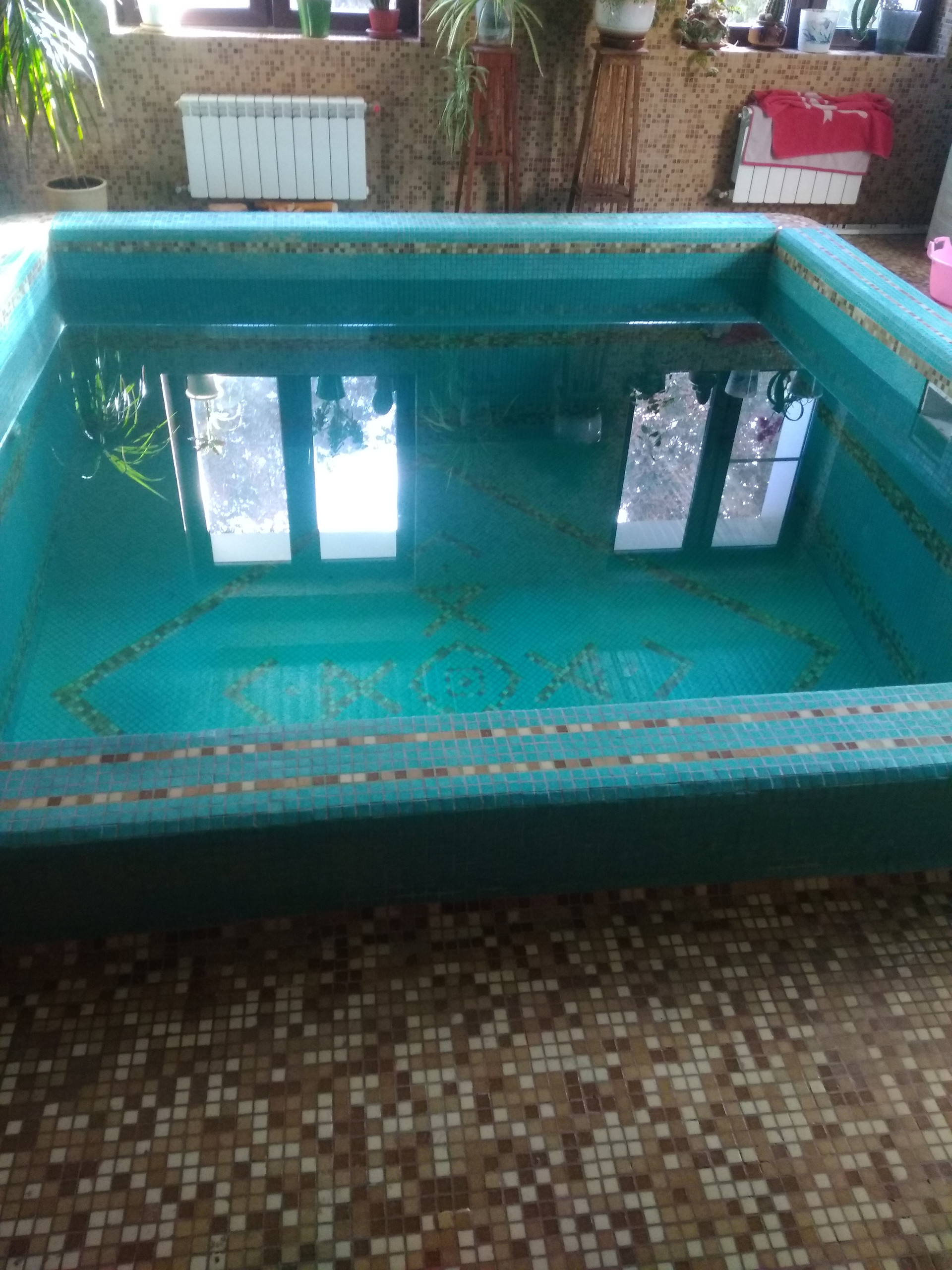 Качественная отделка,стены декоративная штукатурка, санузел, бассейн кухня мозаика, хорошая сантехника. Дом готов к проживанию, ремонт требуется только в зале на 1 этаже и частично лестницы ( установка перил,ступеней, лестничный каркас очень прочный,с первого на второй этаж идёт широкая закругленная лестница. Высота потолков на 1 этаже (6 м) позволяет сделать полуэтаж,для людей с фантазией, желающих воплотить свои смелые идеи.