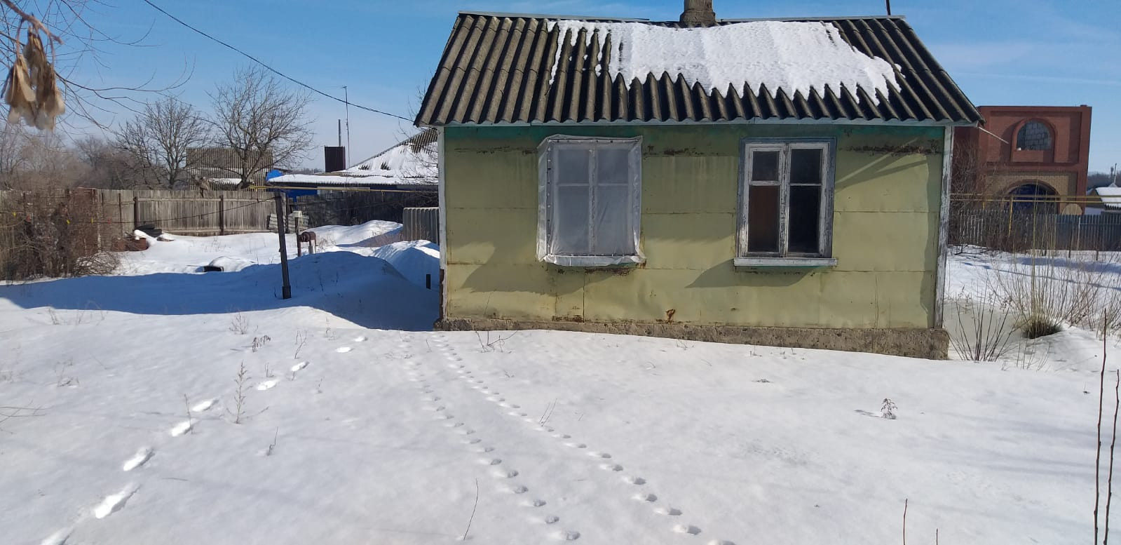 Продаётся дом в центре посёлка.Газ и водопровод проходят 10 метров от дома,во дворе имеется своя скважина.Вокруг дома залит фундамент под строительство .Все остальные подробности при осмотре.