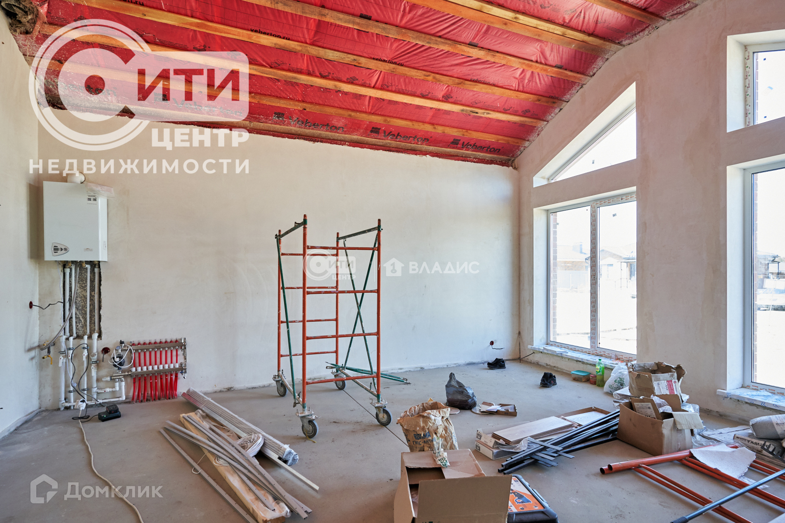 Отделка помещений пред чистовая, натяжной потолок во всех помещениях, электропитание до оконечных устройств, щит распределения находится в удобном месте у входа, стены оштукатурены по маякам механизированным способом тёплой штукатуркой, смонтирована система отопления – двухконтурный котёл, радиаторы отопления и теплый пол во всех помещениях, выведены трубы для воды и канализации, выполнена финишная стяжка пола, установлены подоконники на окнах и откосы, металлическая входная дверь.