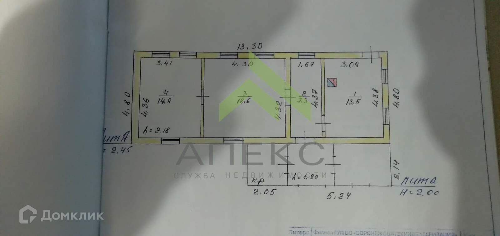 Общая площадь 54.3 м2