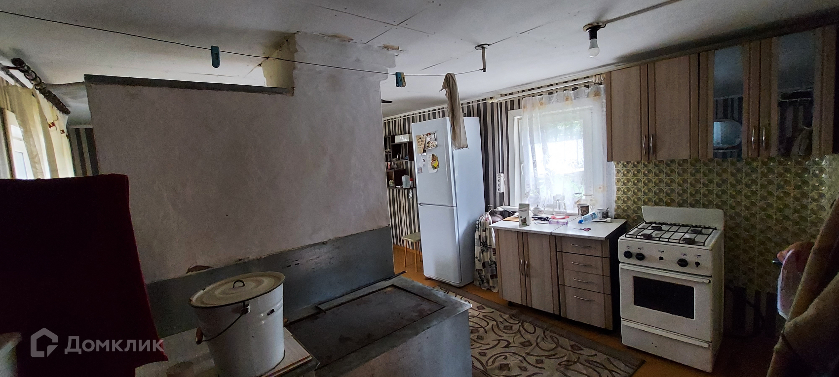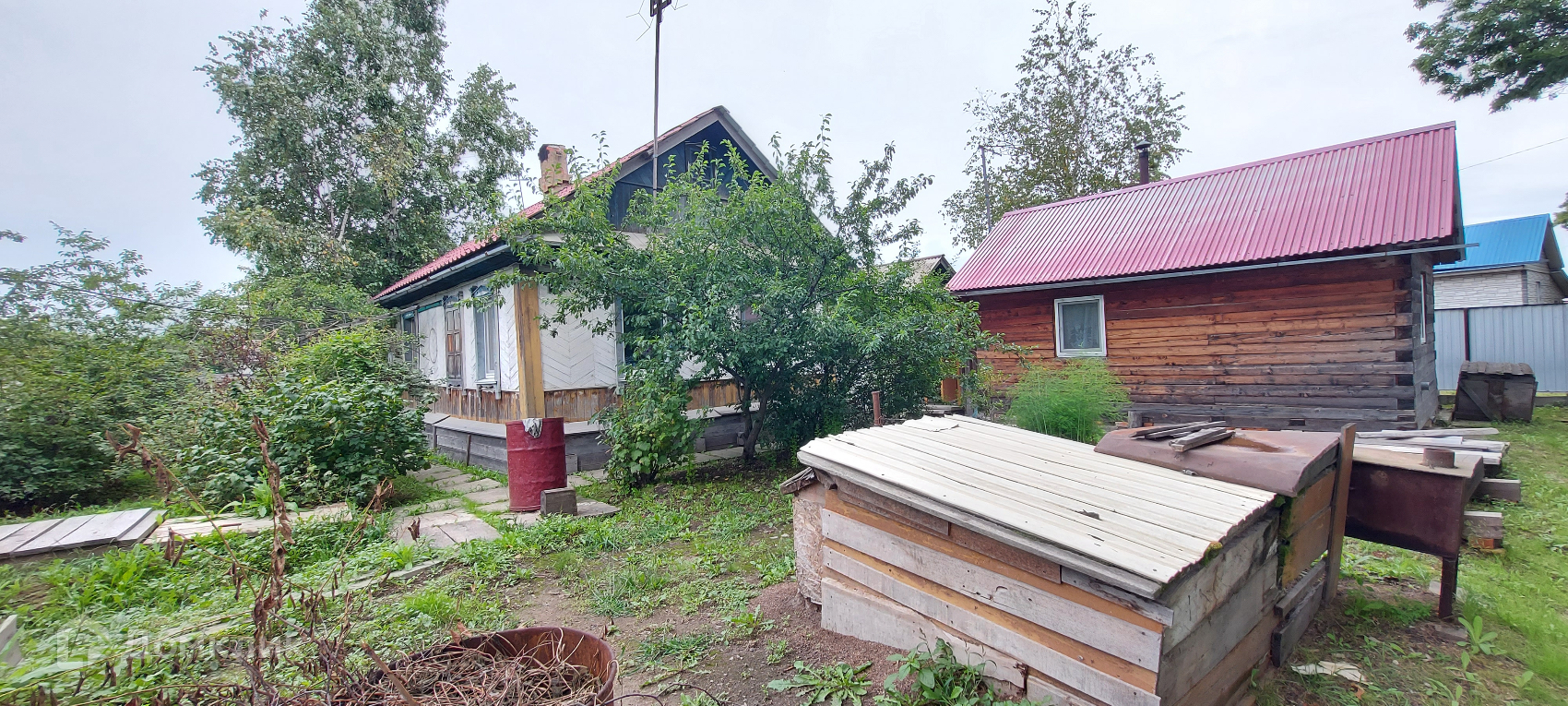 На участке находятся 2 отдельные кухни, летняя с 2 холодильника и местом для отдыха. Вторая кухня утепленная-зимняя, возведена печь, которая делит помещение на 2 зоны, одна рабочая, другая для отдыха с 2 диванами, холодильником и тв.