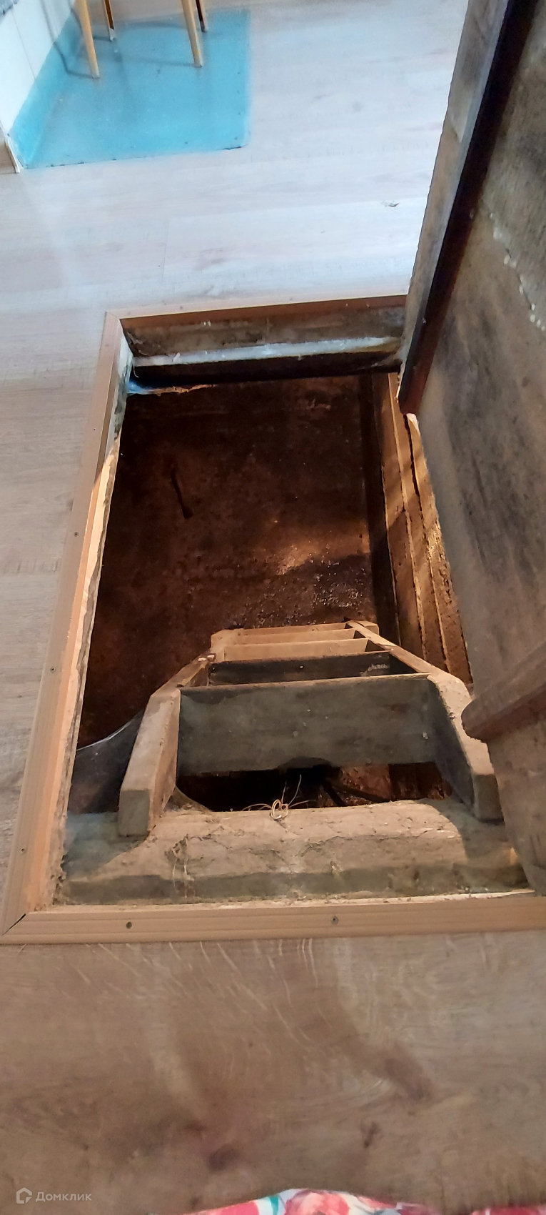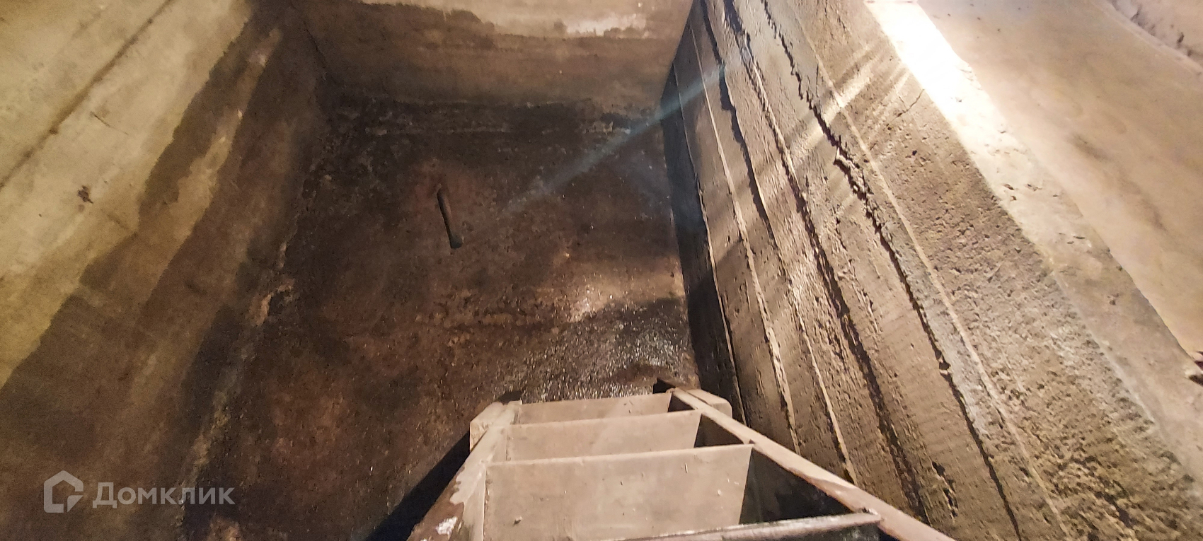 Глубокий погреб с основным отделом с секциями для консервации, установлен насос.