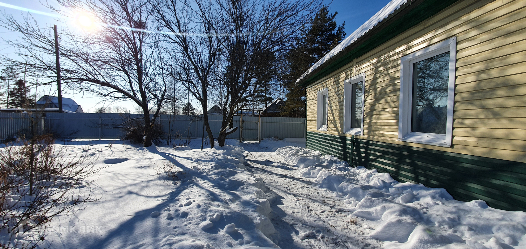 Участок ИЖС сухой, ровный, площадью 12 соток. По периметру участок огорожен забором из профлиста. На участке также имеется крепкий сарай из бруса, сад, огород.