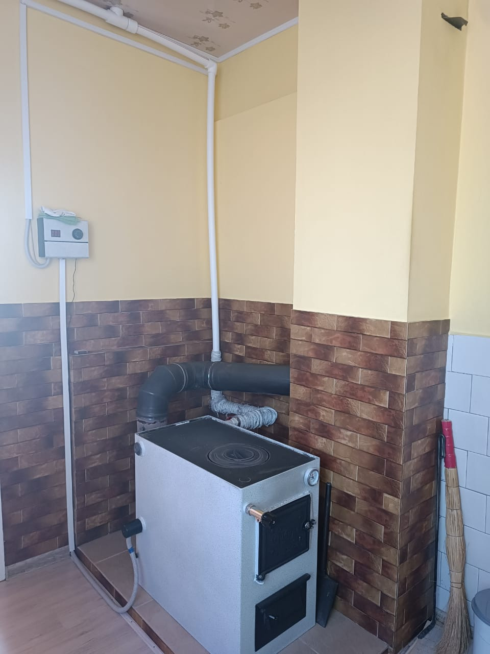Отопление электрическое-380 вт и водяное .Полы застелены утепленным линолеумом.